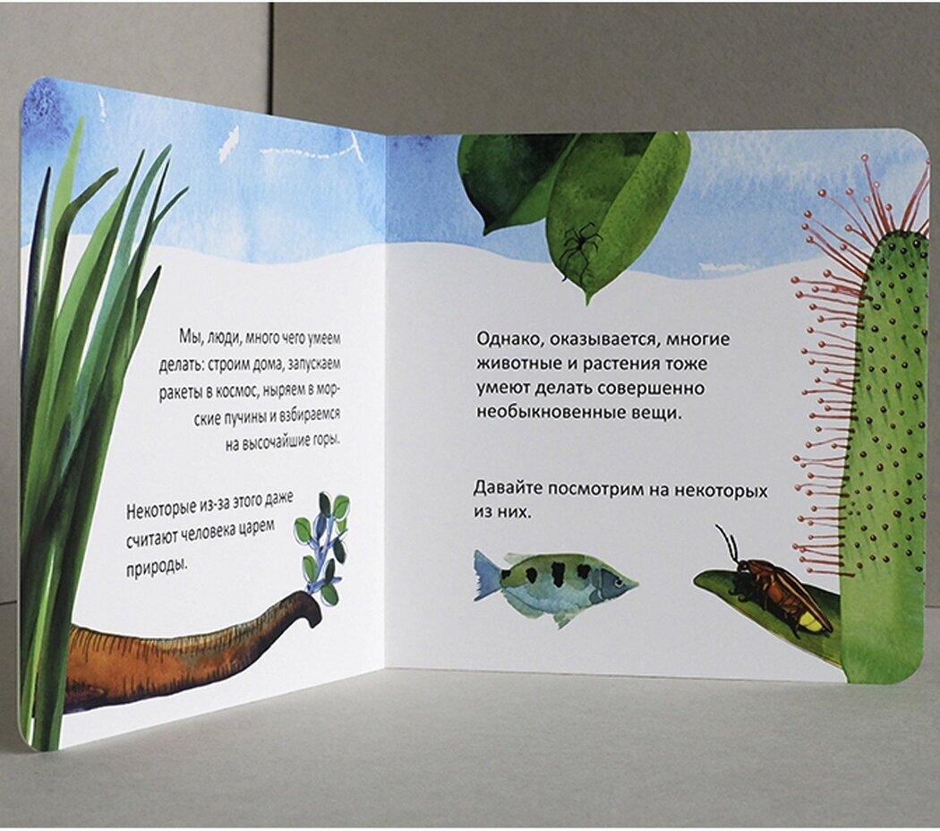 Оказывается животные и растения могут делать потрясающие вещи: стрелять плодами, устраивать себе душ в жаркий день, освещать ночь, летать без крыльев и даже танцевать. Эта интерактивная книга расскажет вам об удивительных умениях животных и растений.