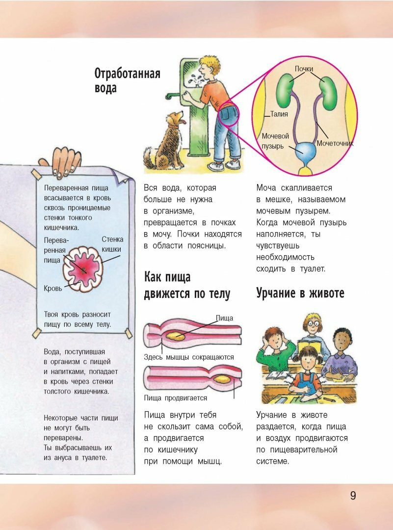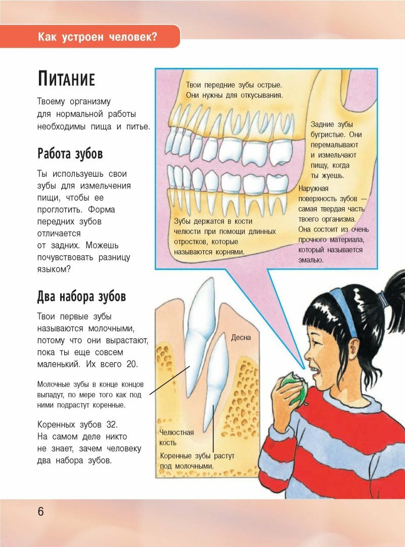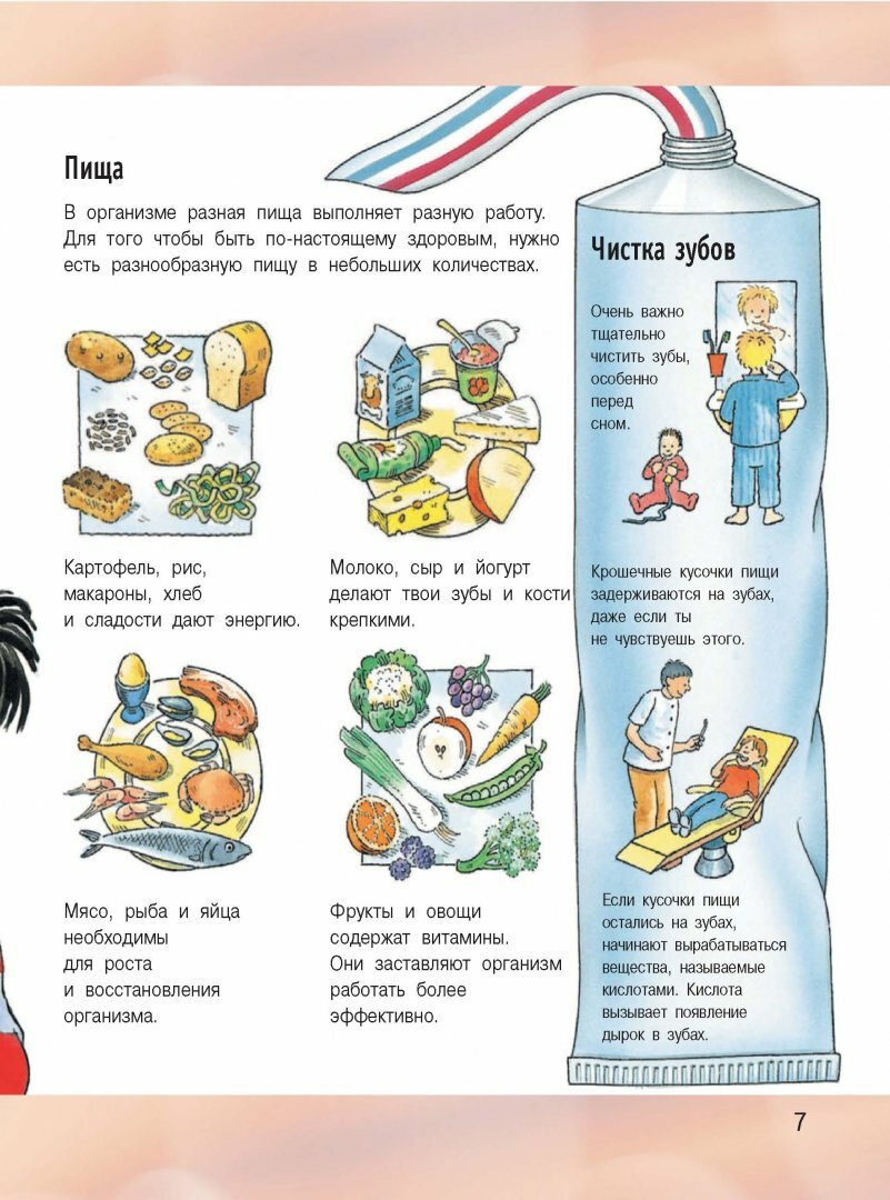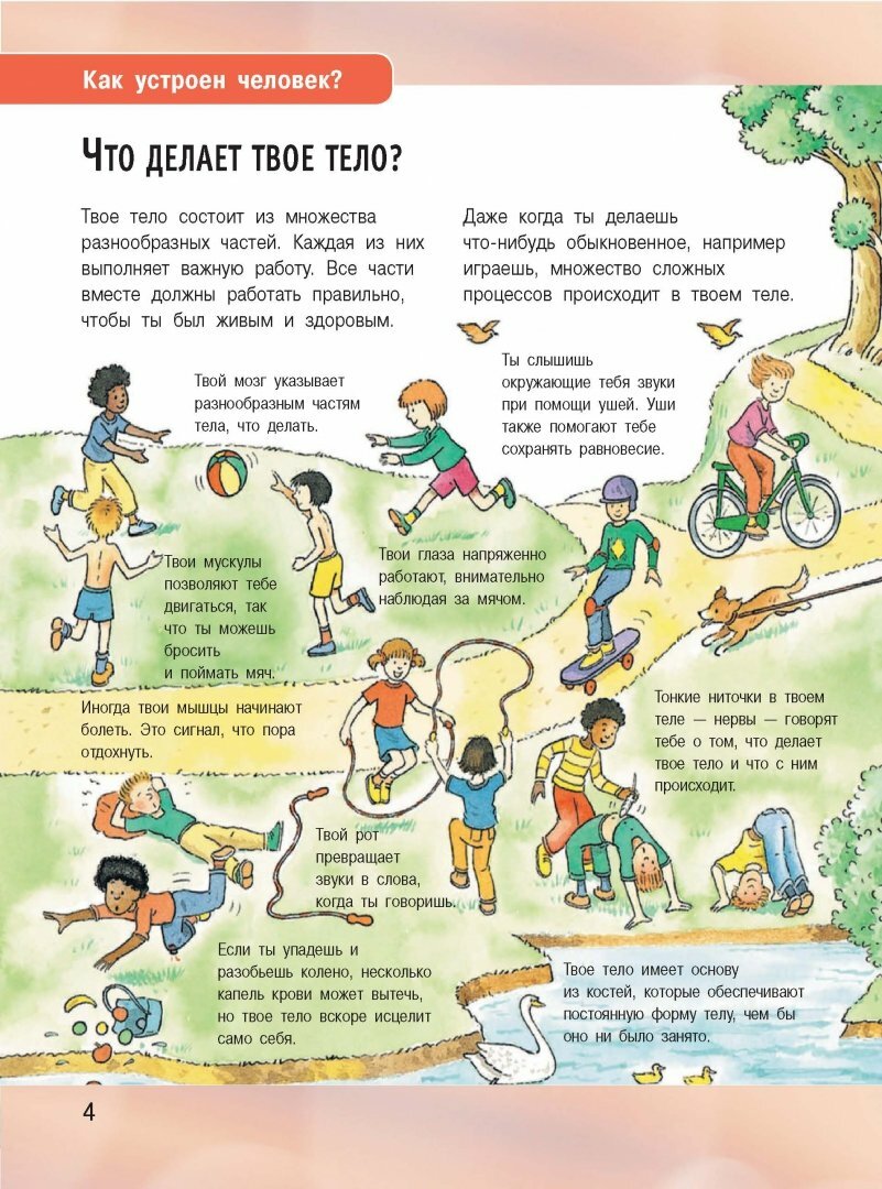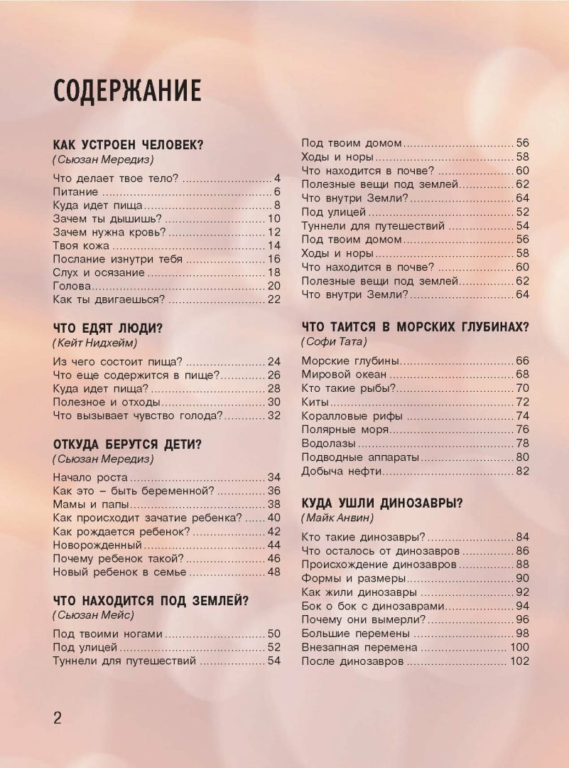 Каждой теме отведено около 25 страниц. Представленная информация достаточно проста в изложении, поэтому дети в возрасте 6-12 лет могут читать книгу самостоятельно. А если вопросы все же останутся, то можно изучить ее вместе. Ведь узнавать новое никогда не бывает поздно! -
