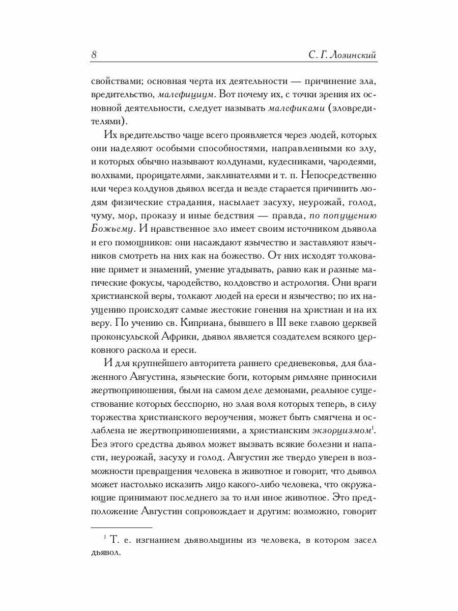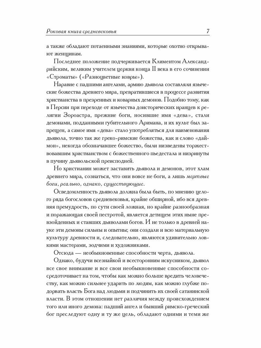 Переиздание классического перевода знаменитого демонологического трактата, выполненного в первой половине 20 века Н. Цветковым. Книга включает обширное предисловие Роковая книга средневековья С. Лозинского, перевод самого трактата, причем юридическая часть дана в сокращении, а также в качестве дополнений тексты Я. Канторовича Средневековые процессы о ведьмах и А.Н. Афанасьева Процессы о колдунах и ведьмах. В самом трактате рассматриваются такие вопросы, как Существует ли колдовство? Действует ли дьявол совместно с колдуном? Могут ли быть порождены люди инкубами и суккубами? Придают ли ведьмы людям облики животных? Что надо думать о волках, которые крадут и пожирают как взрослых людей, так и мальчиков? О повивальных бабках-ведьмах, предупреждающих различными способами зачатие во чреве матери, производящих аборты и посвящающих новорожденных демонам