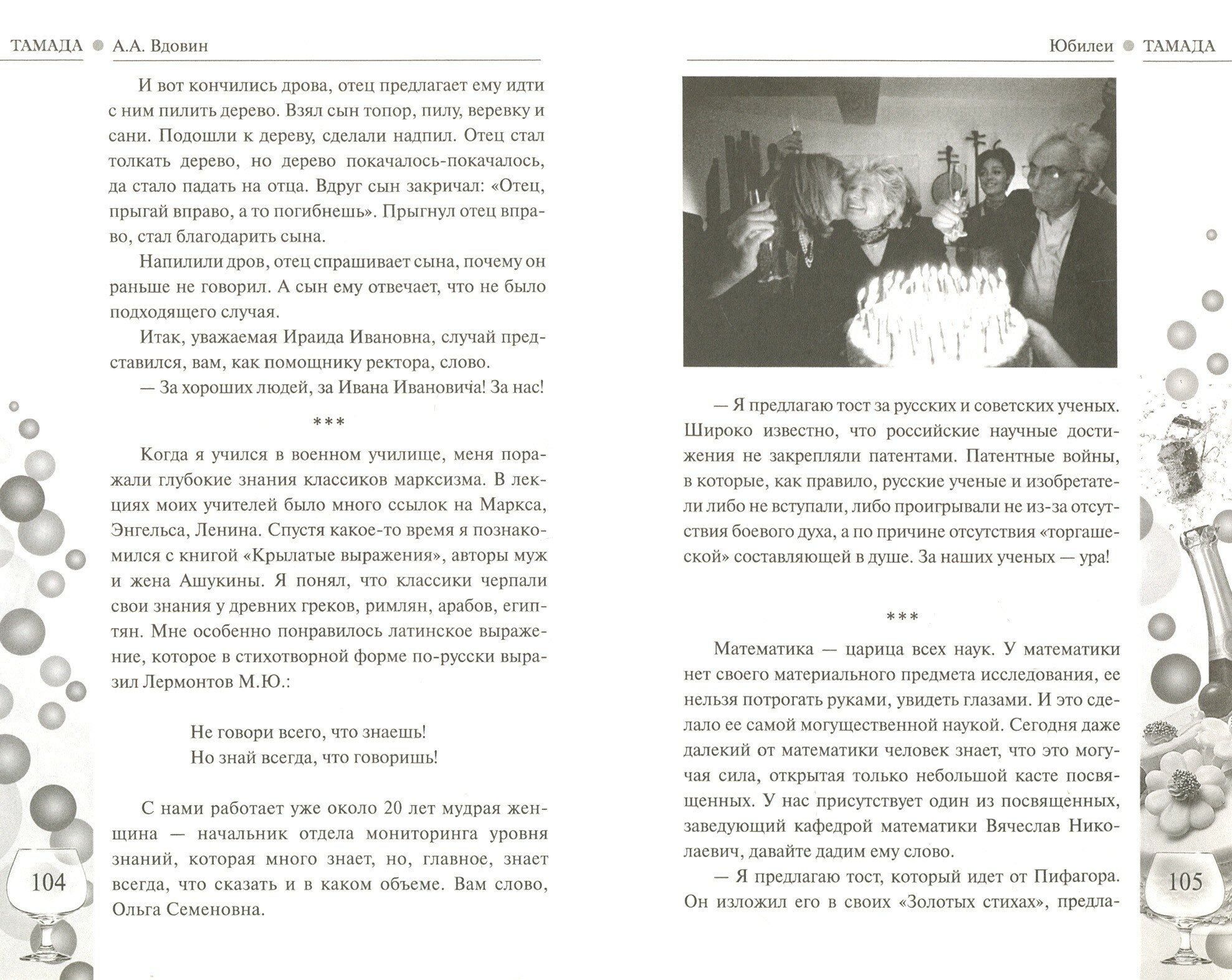Редкая по содержанию и оформлению книга, предназначена для легкого чтения. В ней нет политики, нет религии, нет глубокомысленной науки, тяжеловесных поучений, стиль изложения прост, читается легко с интересом и улыбкой. Автор непринужденно и свободно высекает из фактов, изложенных тамадой, искру интереса. Не только ценители изящной словесности получат удовольствие от чтения этой книги, а и интеллектуалы, мечтающие об острой пищи для ума, и, естественно, знатоки всемирной истории и все, владеющие русским языком.