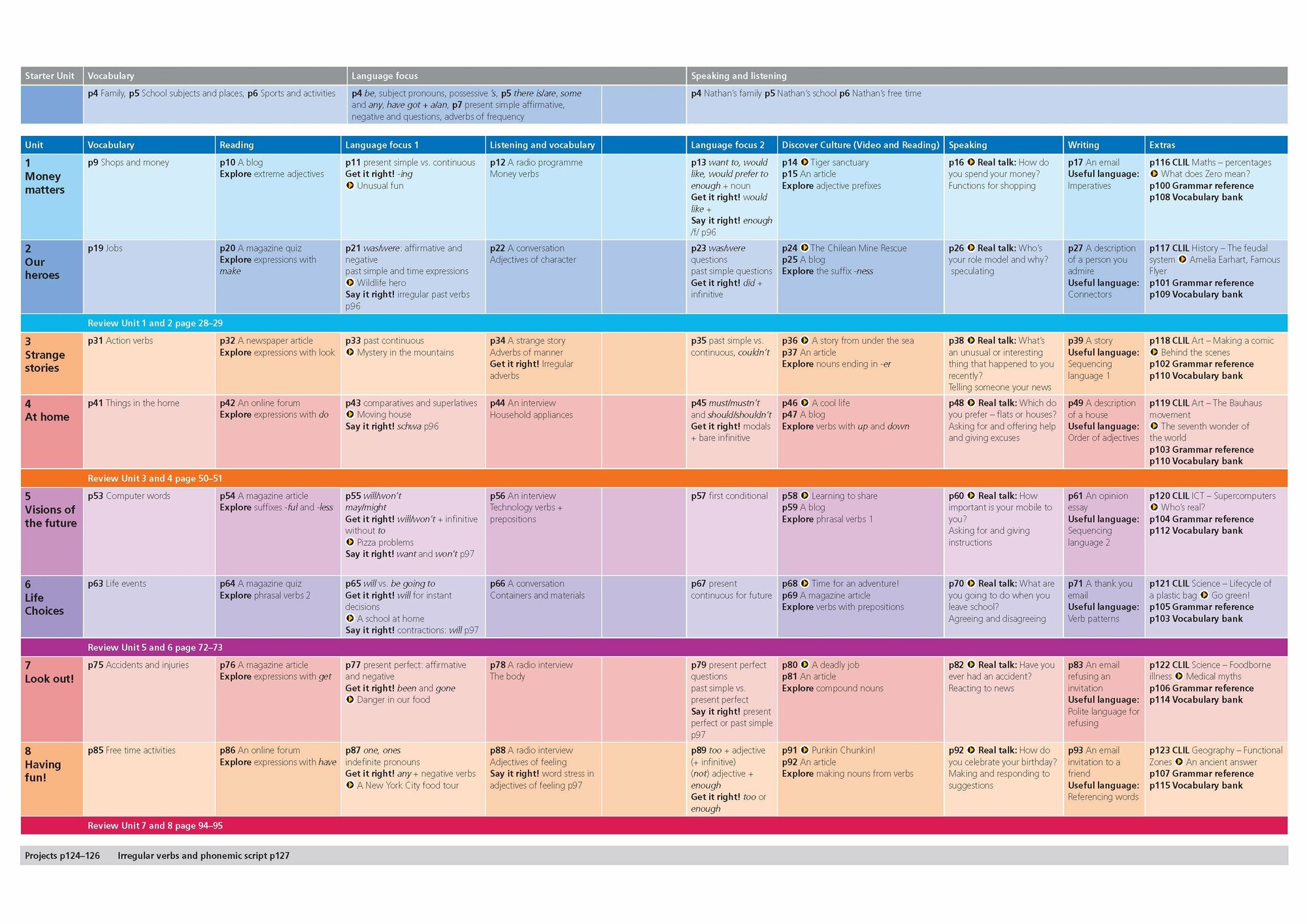 В каждом юните 4 видео- как на Дискавери канале. К ним задания (видео и аудио находятся в сети), как и книга для учителя. Первый уровень занимались с экрана, но не очень удобно- в конце есть дополнительные задания по грамматике и вокабуляру. Clil уроки тоже в конце. Диск с видео и аудио не входит! -