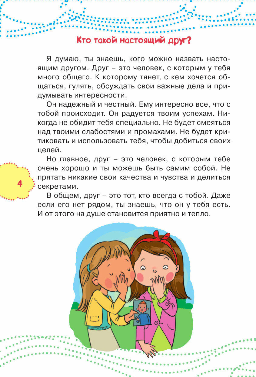 Скорее это не книга, а брошюра в твердом переплете. Все написано кратко сжато с картинками. Возможно такой вариант и нужен подростку. Купила дочке 12 лет. Она часто спрашивает у меня совет по поводу отношений с одноклассниками и дружбы. Ее оценку узнаю позже. Надеюсь ей понравится. Соотношение цена/качество - хорошее. Берите.