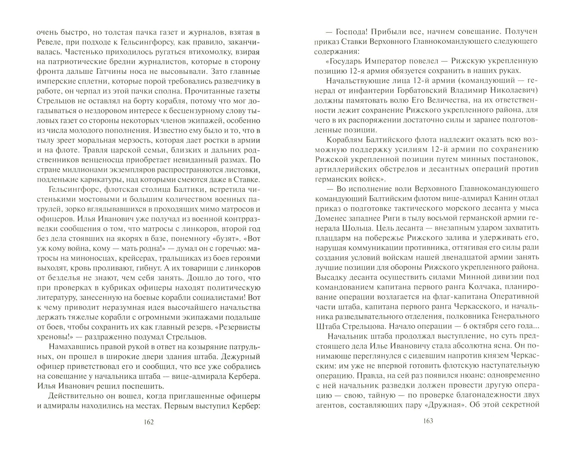 Впервые познакомился с творчеством этого автора и не пожалел. Прекрасный роман о флоте и его людях, и написан со знанием дела и специфики флотской службы. Это сага о русской военной разведке на Балтике во время Первой Мировой войны написана хорошо и интересно, читается быстро и с огромным удовольствием. Собственно о первой части романа достаточно сказано в описании, добавлю лишь то, что полковник Генерального Штаба начальник разведотделения БФ Стрельцов Илья Иванович - фигура вымышленная, однако на страницах книги бок о бок соседствует с вполне реальными адмиралами и офицерами фактически служившими в 1914-16 годах на Балтийском флоте. Это адмиралы Эссен Н. О., Непенин А. И., Бахирев М. К., капитаны 1 ранга Колчак А. В., Ренгартен И. И., Черкасский М. Б. и другие. Имеется и вторая часть романа, пока не изданная. Есть на СИ с авторским названием "Пароль: "Тишина над Балтикой". Повторюсь: книга замечательная и очень понравилась. Что-то родственное наблюдается со знаменитым романом В. С. Пикуля "Моонзунд": и по времени, и по героям, и по манере и легкости изложения. И кстати за этой кажущейся легкостью, стоит тяжелый и кропотливый труд автора, писавшего эту книгу в течении четырех лет. Имеется во второй части и послесловие автора, в котором говорится о дальнейшей судьбе некоторых героев романа, и где автор объясняет отдельные свои решения связанные с сюжетом, но об этом писать не буду, дабы не разглашать интригу романа. Рекомендую.