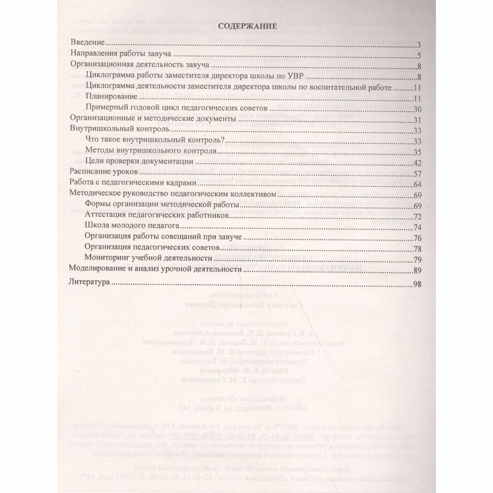 Пособие предназначено в помощь начинающему заместителю директора школы по организации научно-методической и учебно-воспитательной работы. Предложены модели планирования административной деятельности, направления и функциональные обязанности заместителя директора ОО, системы документооборота и ведения документации, необходимой для реализации ФГОС, рекомендации по организации внутришкольного контроля и работы с педагогическими кадрами, диагностические и мониторинговые материалы, формы и шаблоны аналитических справок, протоколов совещаний, педагогических советов.