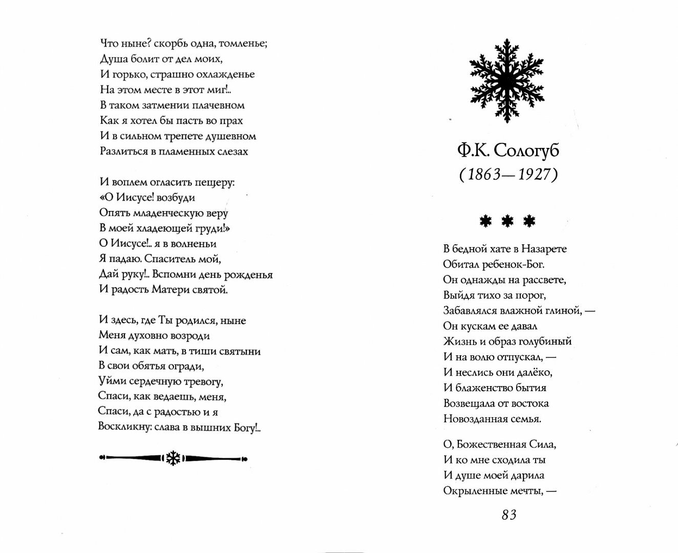 Потрясающая книга для подарка или для чтения. Стихи великих классиков создают неповторимое праздничное настроение! Таким добром и уютом проникнуты его произведения про Рождество, про чудесное время года, окутанное белым снегом. Такие разные и такие новогодние строки никого не оставят равнодушными. На мой взгляд, очень интересная мысль обьединить творчество таких разных поэтов в одной книге, красиво оформленной. Так можно привлечь внимание к классической литературе, ведь привычные сборники стихов о любви очень привычны для читателя, а новогодний сборник - это просто находка среди многообразия современных изданий.