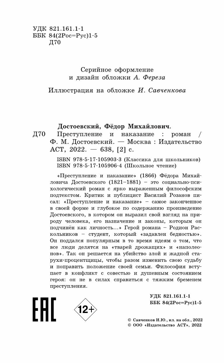 Книга: Преступление и наказание (Достоевский Федор Михайлович); АСТ, Образовательные проекты, 2018