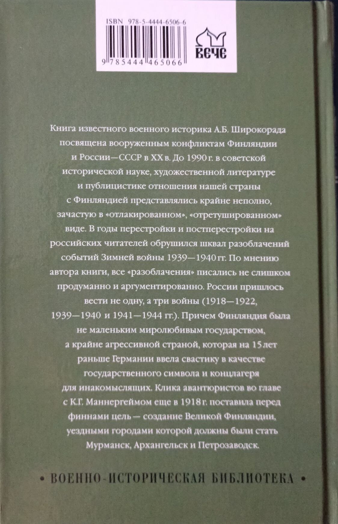 Книга известного военного историка А.Б. Широкорада посвящена вооруженным конфликтам Финляндии и России-СССР в XX в. До 1990 г. в советской исторической науке, художественной литературе и публицистике отношения нашей страны с Финляндией представлялись крайне неполно, зачастую в "отлакированном", "отретушированном" виде.