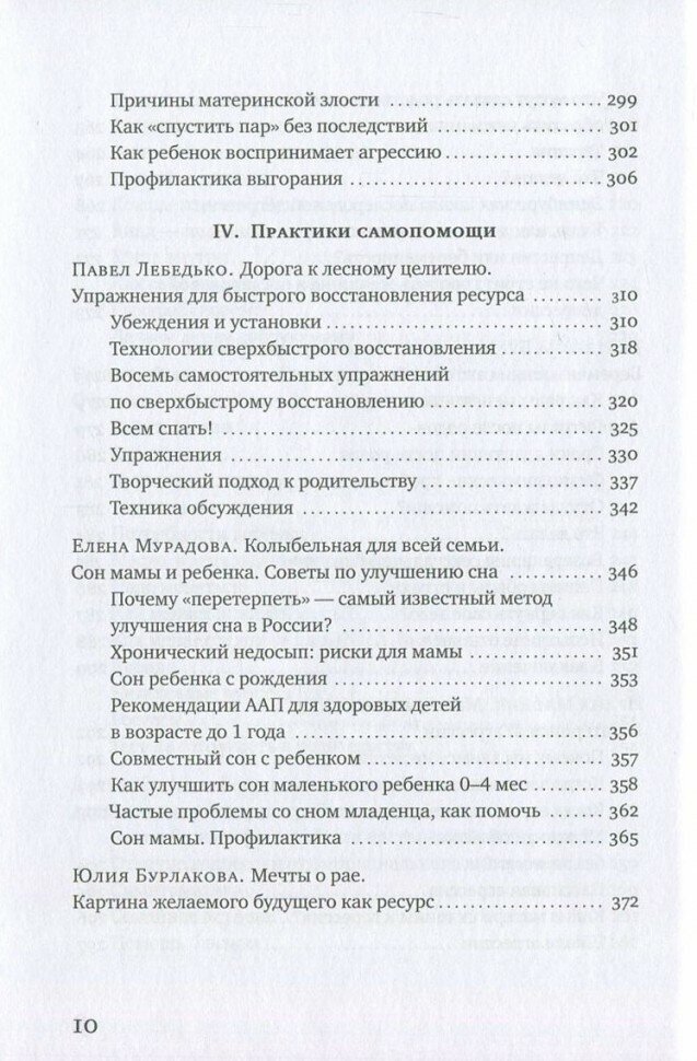 В книге также собраны практики самопомощи: как поддержать себя, когда поддержки искать негде: быстрые техники восстановления, советы, как наладить сон мамы и ребенка, 10 сценариев получасовых побегов, 7 книг для поддержки и вдохновении, 15 фильмов о родительстве, которые поднимут настроение, 13 полезных для родителей сайтов, 21 рецепт для уставшей мамы и 12 записок-мотиваторов.