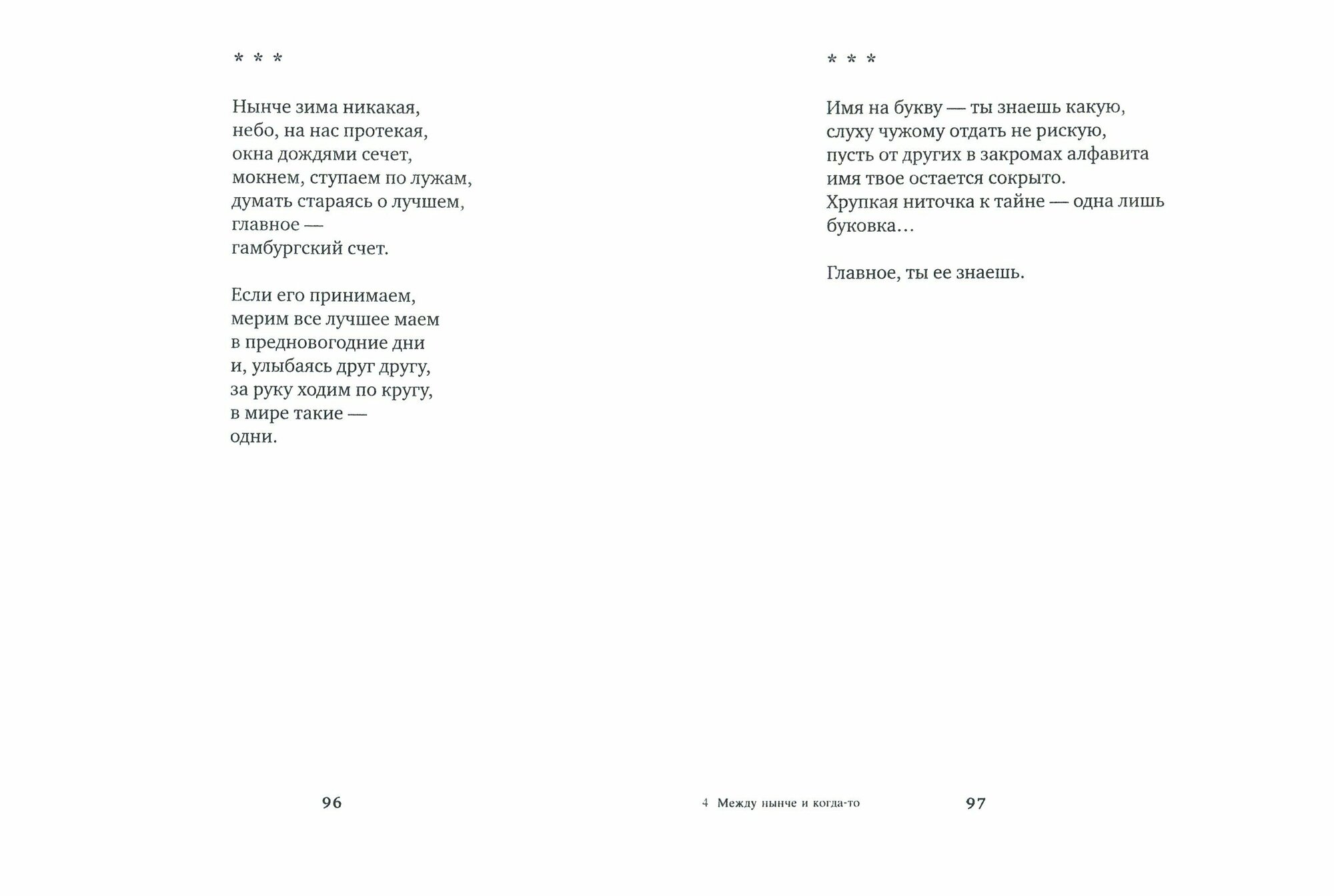 Заинтересовалась этим автором,прочитав его перевод детской книжки "Тетрадь по арифметике кота Котангенса".Книга стихов небольшая,но практически каждое стихотворение чем-то задело,привлекло,восхитило.Никогда не встречала ни в книгах, ни от людей,что бы так писали о работе переводчика."Переводя Монтале"-по-моему -это гениально. Евгения Солоновича надо цитировать.Стихи разные- есть,как музыка,есть ,как лесенка,но все с тонким смыслом,как мне кажется.И что удивительно,читая стихи,я вижу автора.Удивительные ощущения.Рекомендую.
