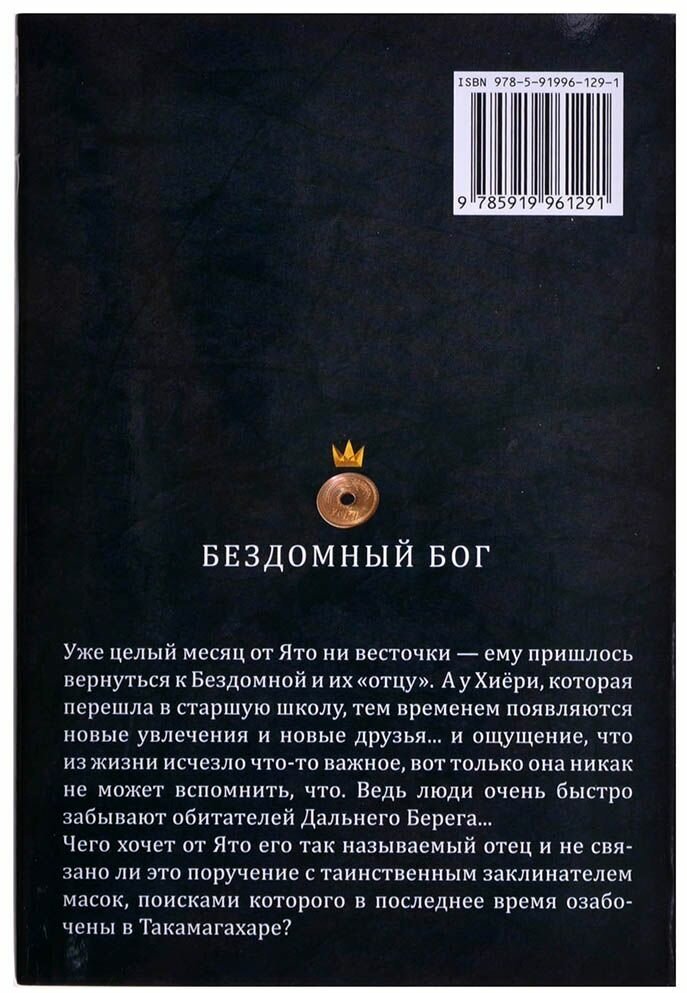 Уже целый месяц от Ято ни весточки - ему пришлось вернуться к Бездомной и их "отцу". А у Хиёри, которая перешла в старшую школу, тем временем появляются новые увлечения и новые друзья... и ощущение, что из жизни исчезло что-то важное, вот только она никак не может вспомнить, что. Ведь люди очень быстро забывают обитателей Дальнего Берега... Чего хочет от Ято его так называемый отец и не связано ли это поручение с таинственным заклинателем масок, поисками которого в последнее время озабочены в Такамагахаре?