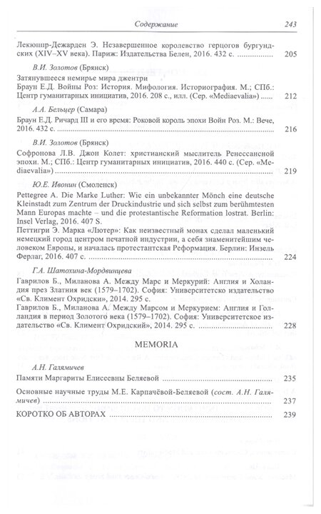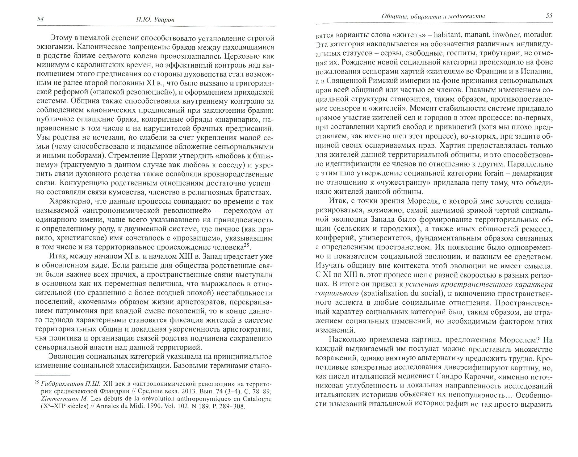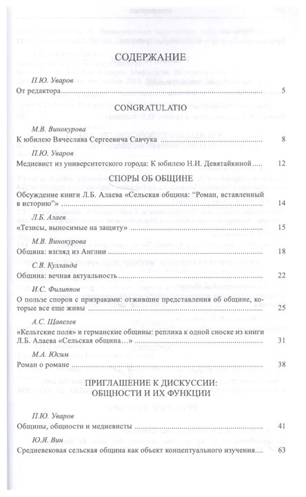 В данном выпуске центральной проблемой является традиционный для отечественной историографии вопрос об общине и, шире, общностях в Средние века. Этому посвящена публикация материалов обсуждения книги Л. Б. Алаева и его полемических тезисов. Раздел "Приглашение к дискуссии" продолжает обсуждение подобной проблематики на примере средневековых ремесленных объединений и различного рода "территориальных общин". Особый блок составляют статьи, посвященные обустройству границ и описанию пространства в XVI в.: англо-шотландское пограничье, кристаллизация герцогства Курляндского, донесения, содержащие описания территорий испанских королей. Издание содержит комментированную публикацию астрологического трактата Моисея Маймонида.