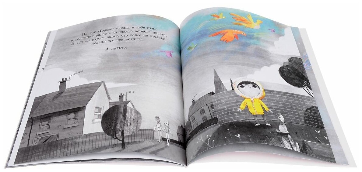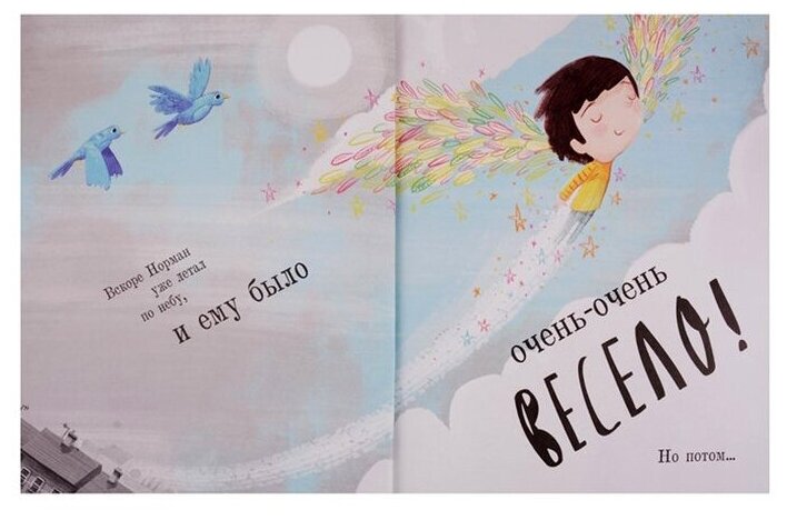Новинка этой зимы от Поляндрии — (Не) обыкновенный Норман. История о мальчике, который был как все, но однажды у него выросли крылья и он научился летать! Казалось бы, что может быть прекраснее? Но дело в том, что ни у кого в округе крыльев не было, поэтому Норман начал стесняться своего отличия, прятать крылья под пальто и чем дальше, тем больше тяготился своей жизнью с крыльями под покрывалом. Но однажды Норман решает избавиться от оков и обретает свободу, легкость полета и долгожданное счастье.