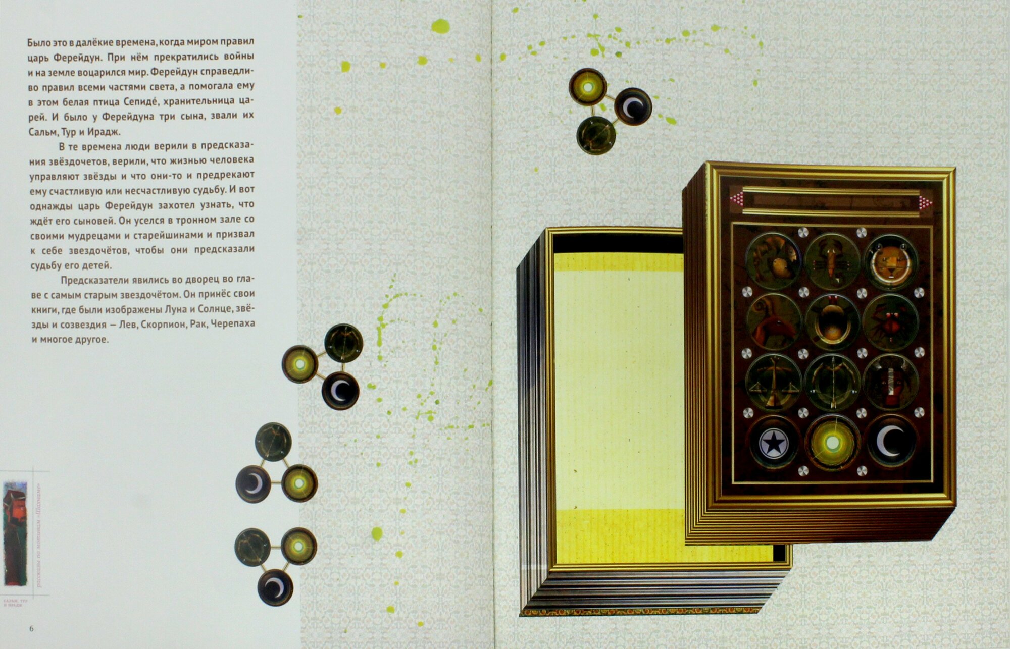 В те времена люди верили в предсказания звездочётов, верили, что жизнью человека управляют звёзды и что они-то и предрекают ему счастливую или несчастливую судьбу. И вот однажды царь Ферейдун захотел узнать, что ждёт его сыновей. Он уселся в тронном зале со своими мудрецами и старейшинами и призвал к себе звездочётов, чтобы они предсказали судьбу его детей...