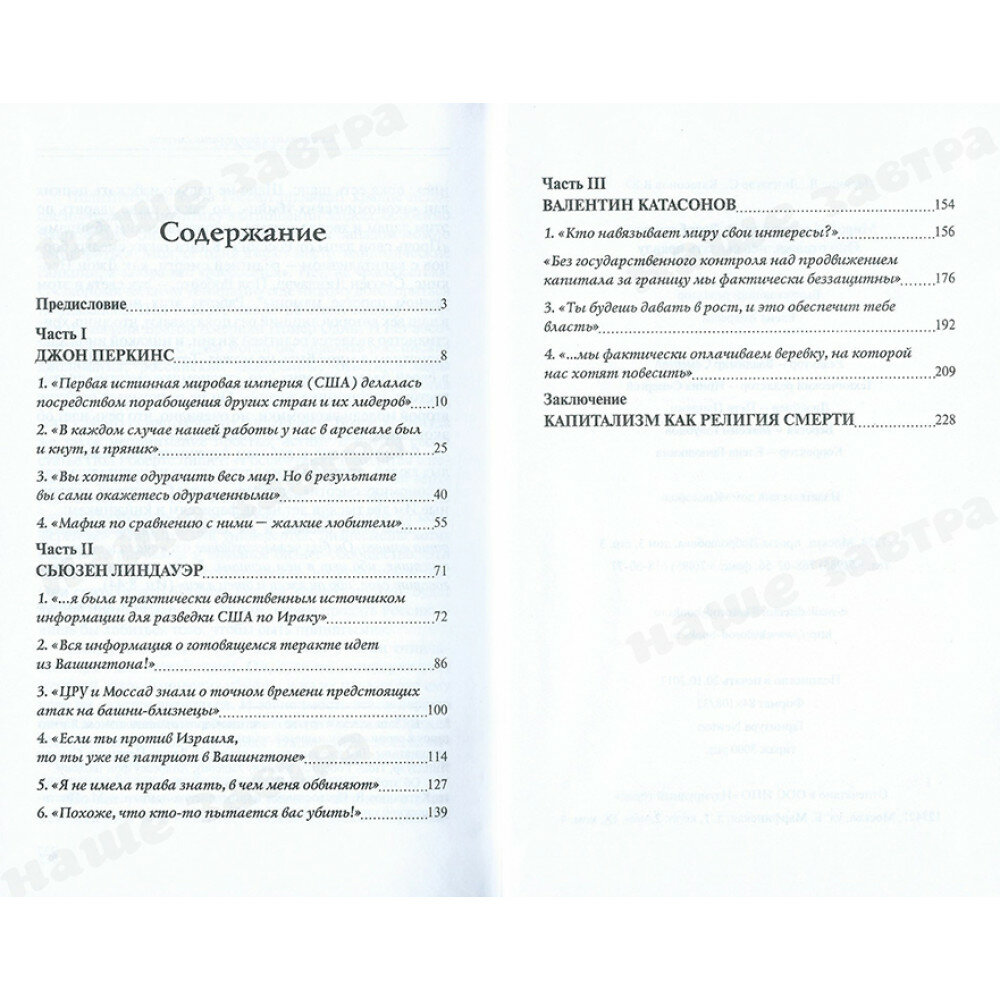 Знакомство с идеями Джона Перкинса, Сьюзен Линдауэр и Валентина Катасонова неизбежно заставит читателя по-новому взглянуть на сегодняшний мир, заставить задуматься. Именно этого и боятся больше всего "хозяева денег".