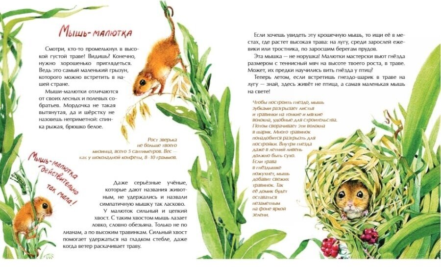 Это великолепно иллюстрированная книга о самых маленьких млекопитающих нашей планеты. Точное описание внешнего вида, реальных размеров, особенностей поведения, среды обитания и многих других любопытных подробностей их жизни становится для читателя незабываемым, увлекательным путешествием в глубины природы, где все, даже такие крошечные, незаметные животные, прекрасны и удивительны.