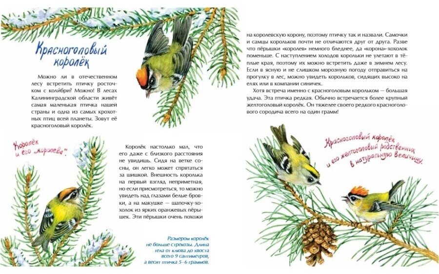 Это книга о птицах, чей вес всего несколько граммов. Вот маленький голубой пингвин, крошечная сова сычик-эльф, самая мелкая речная утка чирок-свистунок, малютка колибри-пчёлка… По всему миру живут сотни разновидностей удивительных маленьких птичек, без звонких голосов которых нельзя даже на миг представить нашу планету.