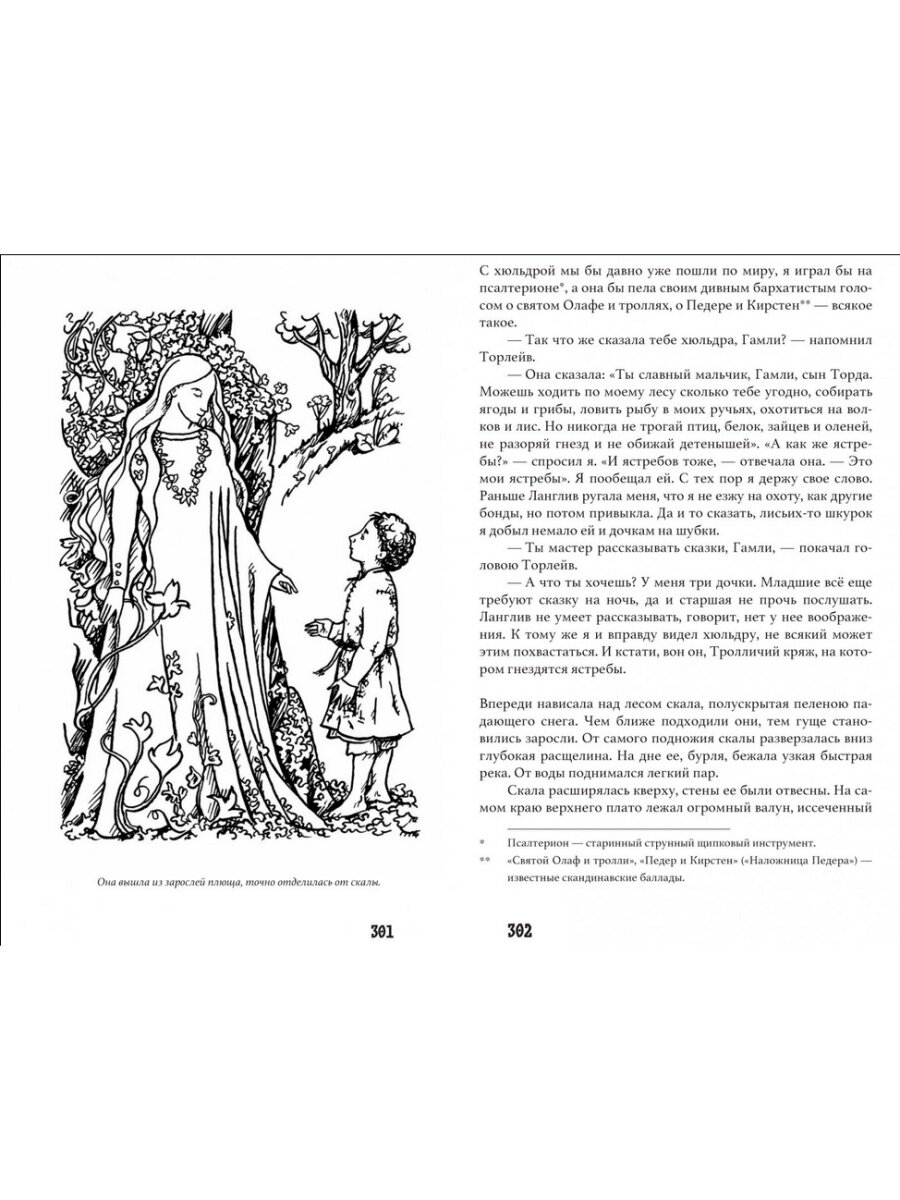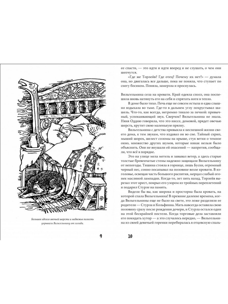 На дворе XIII век, вот уже несколько сотен лет главная вера в Норвегии - христианство, но еще живы легенды о сокровищах викингов, а ведьм, оборотней и троллей побаиваются не только малые дети. Впрочем, семнадцатилетняя Вильгельмина ничего не боится, ведь ее отец Стурла - храбрее и умнее всех на свете, он богатый купец и воин. Безмятежное детство на хуторе заканчивается в одночасье: девушка теряет и дом, и отца. Хорошо, что у нее есть защитник, резчик Торлейв. Вместе молодые люди пускаются на поиски Стурлы - через горы, снежные леса и замерзшие реки, к далеким северным фьордам. Их ждет множество опасных приключений: схватки с разбойниками, сражения и погони, встречи с саамской ведьмой и с таинственной Белой Волчицей. Любовь поможет путникам не пасть духом, преодолеть тяготы пути и превозмочь страх. Художница Мария Пастернак написала и проиллюстрировала удивительную книгу, которая полна исторически точных деталей и в которой, как в настоящей скандинавской саге, оживают благородство и трусость, любовь и ненависть, дружба и предательство.
