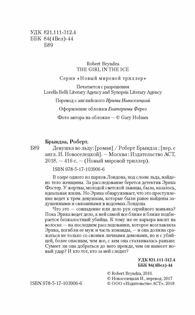 Книга: Девушка во льду (Роберт Брындза); Издательство АСТ, 2016