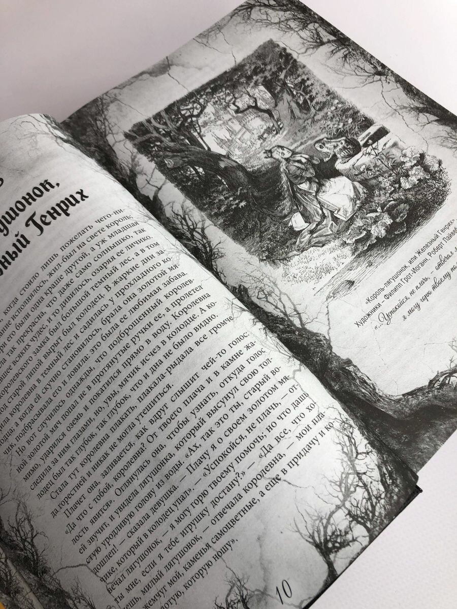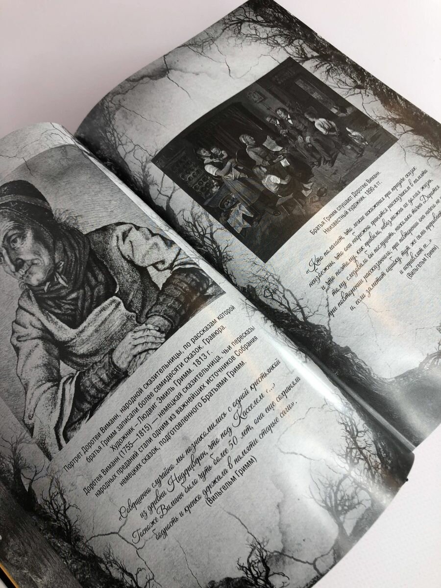Прекрасно оформленное и стильное издание - качественная бумага, вставки из гравюр по сюжетам или из жизни авторов. Сказки совсем не для детей - сюжеты мрачны, любители готики будут в восторге. Рекомендую начать чтение с Золушки, в их варианте "Замарашки", чтобы оценить разницу оригинала и адаптированного детского варианта. Читать что-то из книги детям точно не нужно, такая мысль даже в голову не приходит, книга для взрослых любителей страшных сказок.