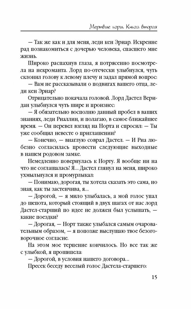 Королевские Мертвые игры все ближе, командные тренировки все жестче, попытки убрать "сильное звено" все изощреннее. И главная причина - предстоящая схватка призванного принца и истинного наследника трона, которая может изменить судьбу королевства. Адептка Риа Каро задумывает создать артефакты высшей защиты, способные сделать команду Некроса сильнее и выносливее. Но, заботясь о других, сама оказывается один на один против... страсти, которая вдруг охватывает сердце лорда Гаэр-аша, главы Некроса. А сильнейший некромант королевства не потерпит отказа и готов действовать жестко и даже жестоко для достижения своей цели.