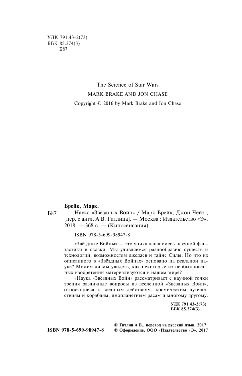 Книга: Наука "Звёздных Войн" (Брейк Марк , Гитлиц Александр Владимирович (переводчик), Чейз Джон (соавтор)); Эксмо, 2017