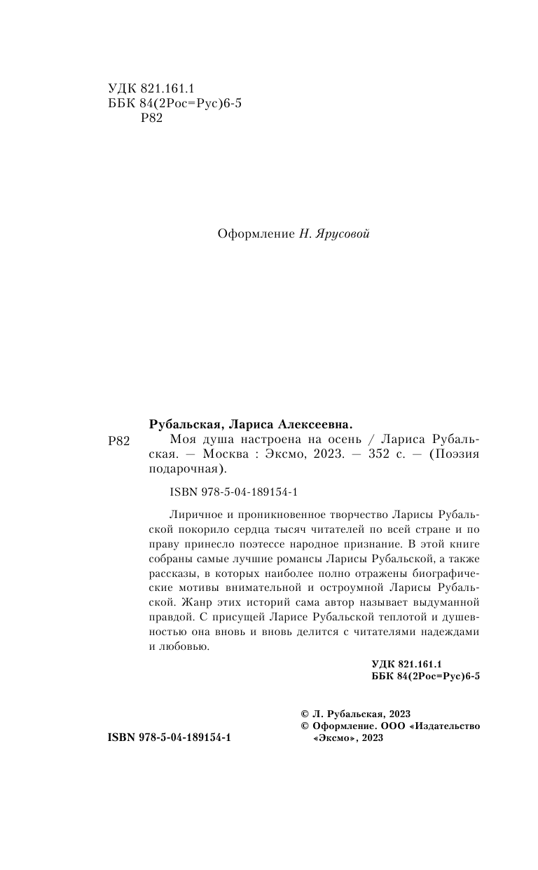 Моя душа настроена на осень (Лариса Алексеевна Рубальская); Эксмо, 2017
