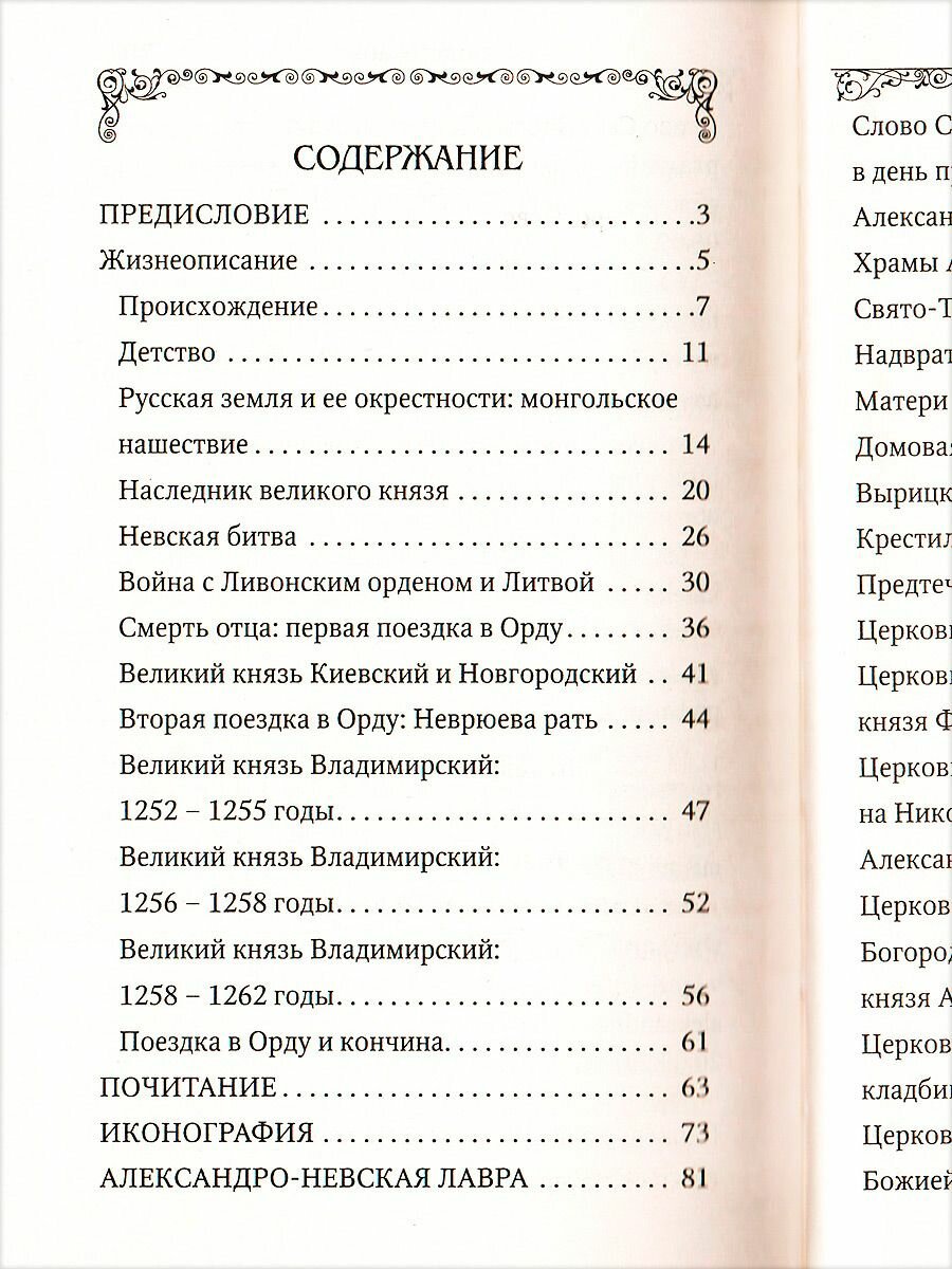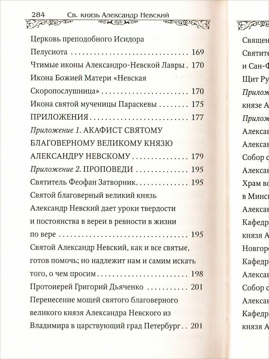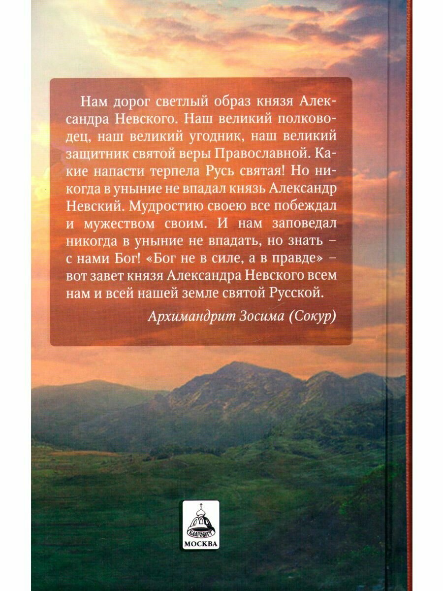 Данный сборник, посвященный святому благоверному князю Александру Невскому, включает в себя его жизнеописание, очерки о его почитании и иконографии, историю посвященной ему обители - Александро-Невской Лавры. Также в книгу включен ряд приложений: акафист святому, проповеди, посвященные благоверному князю Александру, высказывания о нем различных церковных деятелей, история посвященных ему храмов, рассказ о наградах, связанных с именем святого Александра Невского.
