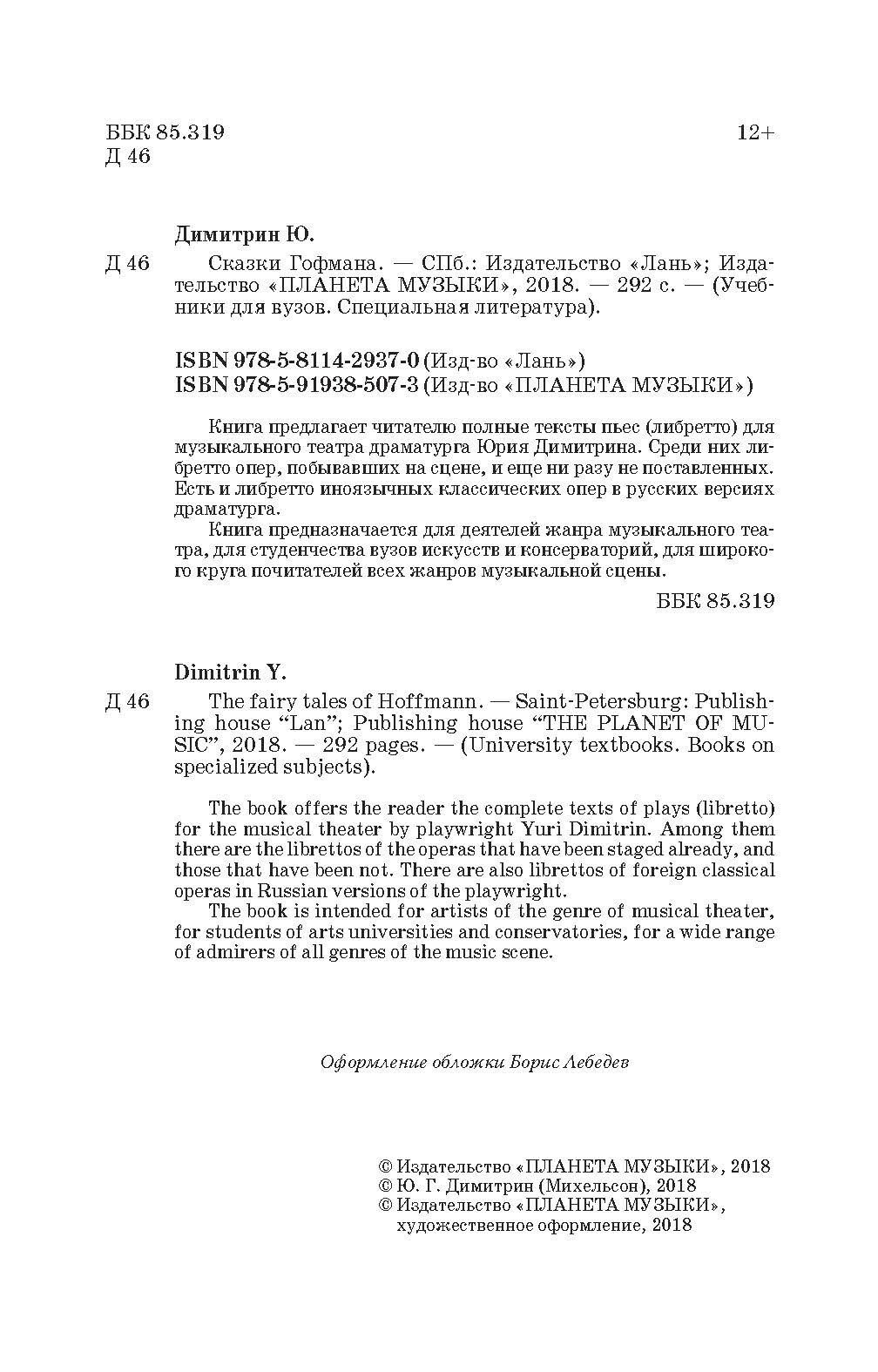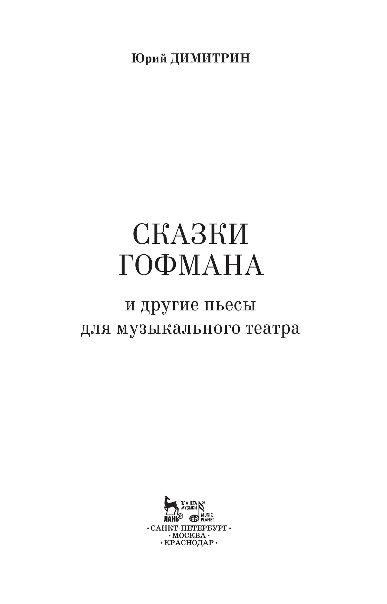 Книга: Сказки Гофмана (Юрий Димитрин); Издательство «Планета музыки», 2018
