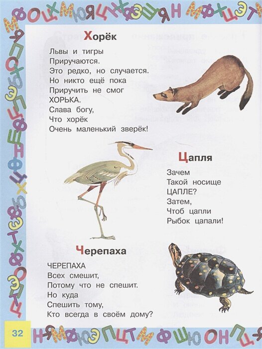 Родители могут прочитать детям эти весёлые стихотворения, показать им, как выглядят буквы русского алфавита, а малыши будут слушать эти стихотворения и рассматривать красивые иллюстрации.