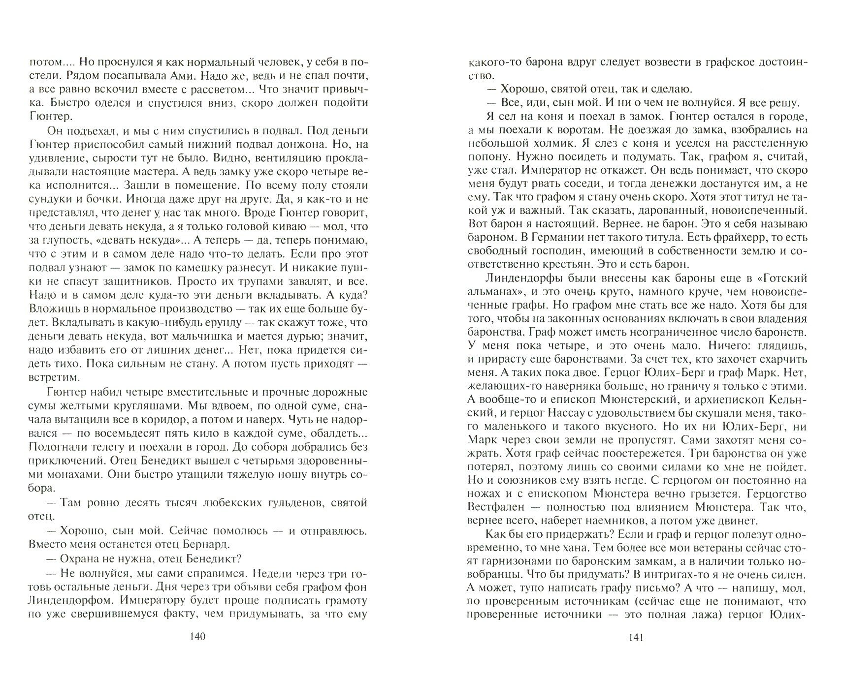 Вот повезло так повезло! Уснул туристом в современной Германии, проснулся там же, но в четырнадцатом веке. Вокруг творится нечто, но ясно одно: тебя собираются убить! А ты не простой человек, ты барон, хоть и юный, да еще и раненый. Ты сеньор людей, что окружают тебя, и отвечаешь за них. И они погибнут вместе с тобой. Потому что это их долг, а твой долг - защитить их. Тогда прочь ненужные сейчас рассуждения и переживания и вперед, в бой! И еще. Похоже, это навсегда. Всю жизнь придется драться за свою жизнь и жизнь близких тебе людей. Ну так и дерись. И все у тебя будет: и друзья и любовь.