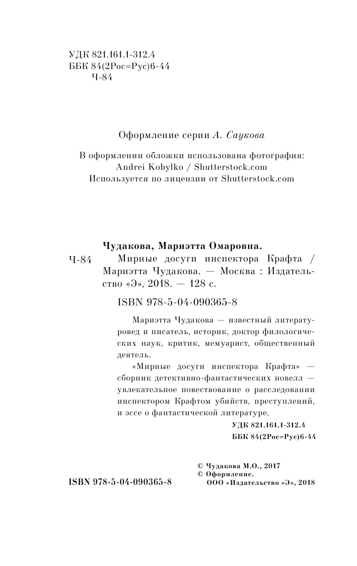 Мирные досуги инспектора Крафта (Чудакова Мариэтта Омаровна); ООО "Издательство "Эксмо", 2017