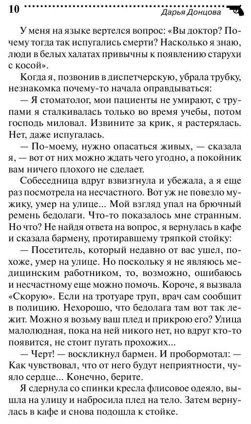 Читая, иногда становилось жутковато, когда появлялась якобы убитая ранее девушка в качестве призрака. Как Дарья Донцова придумает такие сюжеты, ума не приложу. Единственное, не очень понравилось, что в книге появился старик-извращенец. Мне кажется, можно было и без этого обойтись. Такого сейчас у нас в жизни полно и читать не очень хочется об этом в ироническом детективе. Ну а в целом, книгу могу смело рекомендовать. Интересная!