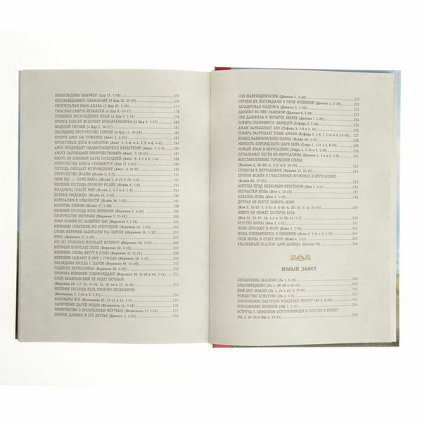 Истории рассказаны в книге просто и интересно. Данные истории дополняют прекрасные иллюстрации. Библейские образы переданы очень хорошо. Книга разделена на Ветхий Завет и Новый Завет.