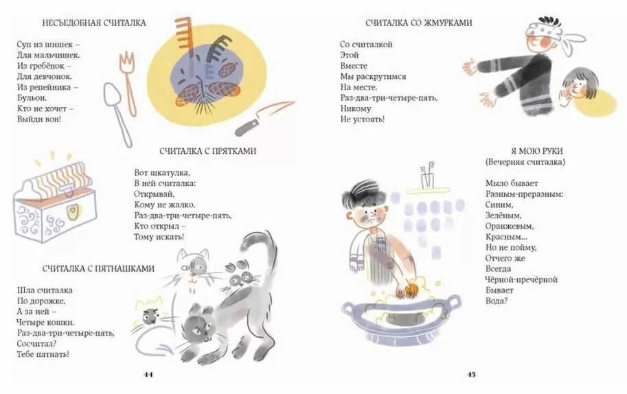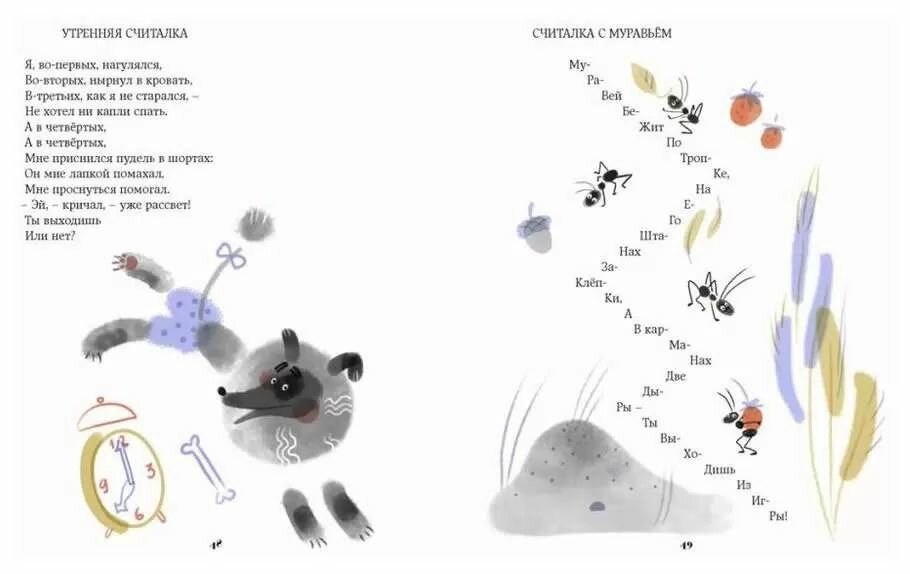 Самая добрая книжка из всех ранее встречавшихся мне! Муж тоже пришел в восторг. В книге есть стихотворения и считалки на все случаи жизни малыша. Особенно меня порадовала тема, посвещенная животным, в частности собакам. Возрастная аудитория: для малышей до 6 лет, но даже у меня стишки вызвали слезы умиления и желание парочку выучить))