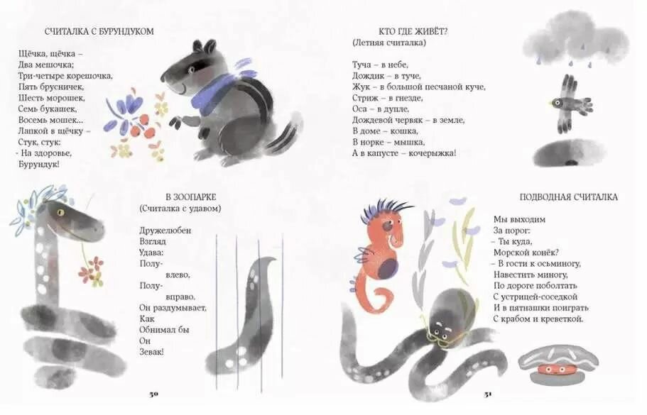 Писатель, поэт и переводчик Михаил Яснов написал удивительно добрые, трогательные, смешные и непредсказуемые стихотворения на все случаи детской жизни. Отдельного внимания удостоились зверята всех мастей, которым автор посвятил строки своих стишков, считалок, скороговорок и даже "коровоговорок". Им вторят озорные иллюстрации Алисы Сербиненко, весело подпрыгивающие на страницах книги.