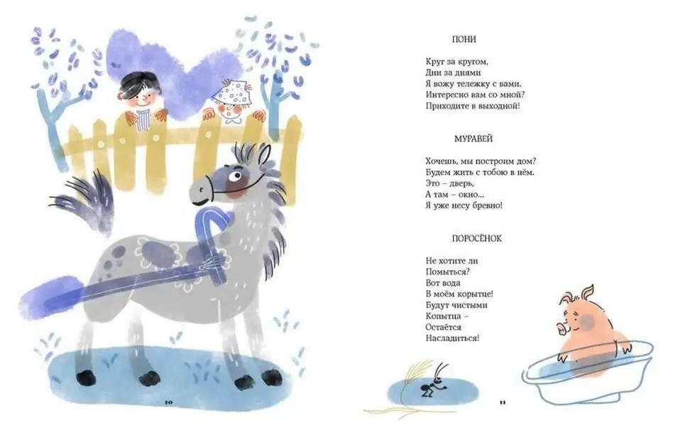 Очень рада,что такие замечательные стихи оформлены в сборник. Книга добротно сделана:твердый переплет,прошитые страницы с достаточно крупным шрифтом делают чтение комфортным.Понравилось,что практически все стихи(даже четверостишия) проиллюстрированны.Рисунки простые и очень понятные,полностью отражают написанное. Книга на первый взгляд кажется простой,но есть в ней что-то,что заинтересовало ребёнка 3 лет.Сразу прочли 38 страниц-рассматривала картинки с удовольствием,задавала вопросы.Очень довольна этим пополнением в своей библиотеке и жду еще книг из этой серии.Для меня книги,где удачно сочетаются талант автора,иллюстратора и трепетное отношение тех,кто участвовал в ее создании -являются образцом классической детской литературы.