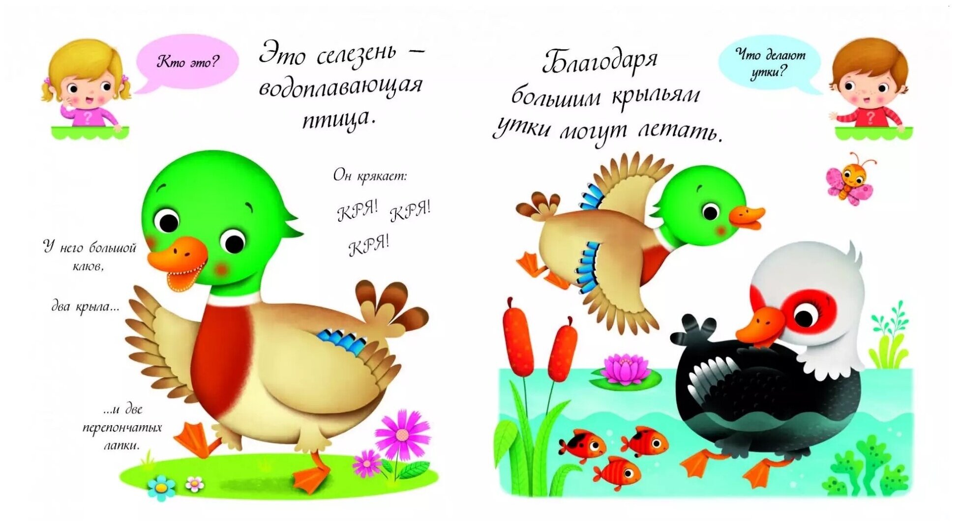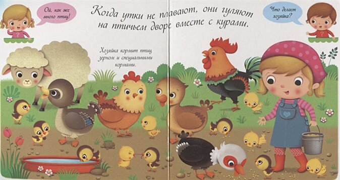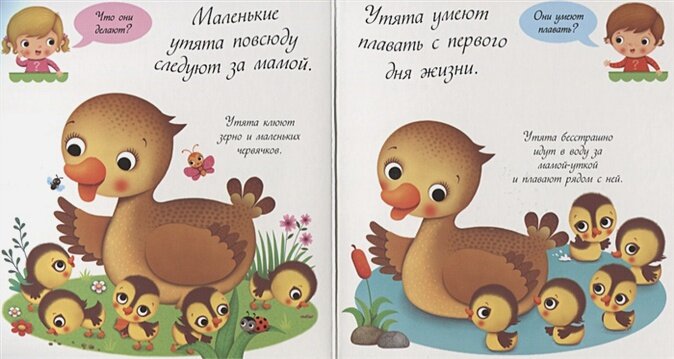 На страницах книги Эксмо «Утки и утята» малыши встретят различных домашних животных, узнают, как за ними ухаживать и чем их кормить. Благодаря сюжетной игре «вопрос-ответ» ребенок научится задавать правильные вопросы и логически мыслить. А красочные иллюстрации заметно обогатят воображение юного читателя.