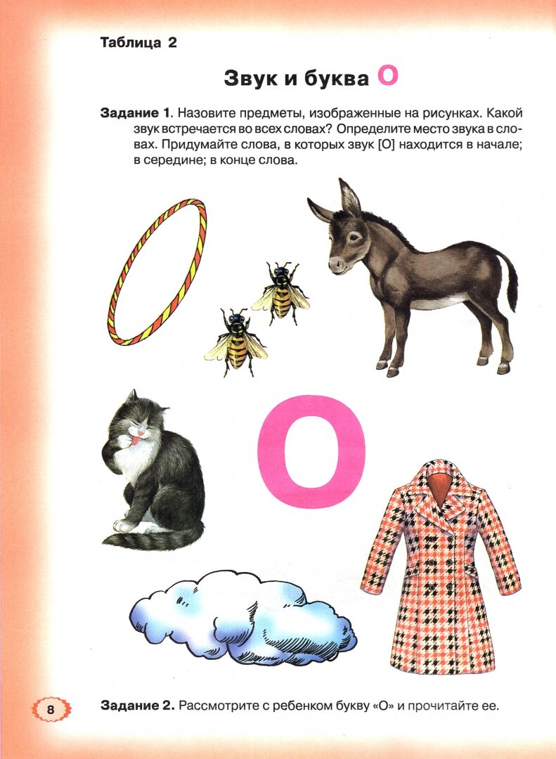 Назови предметы изображенные на странице.Какой звук встречается во всех словах,и где он находится(в начале,середине или в конце).