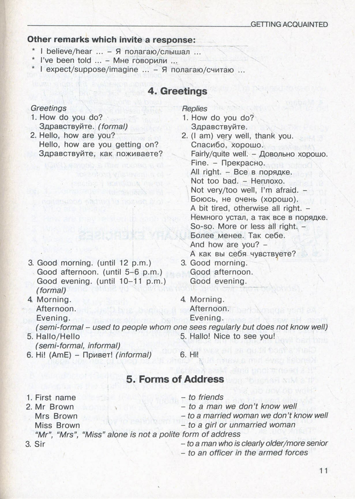 названий национальностей, дат, систем измерения, размеров одежды, объявлений и указателей, разговорных формул.