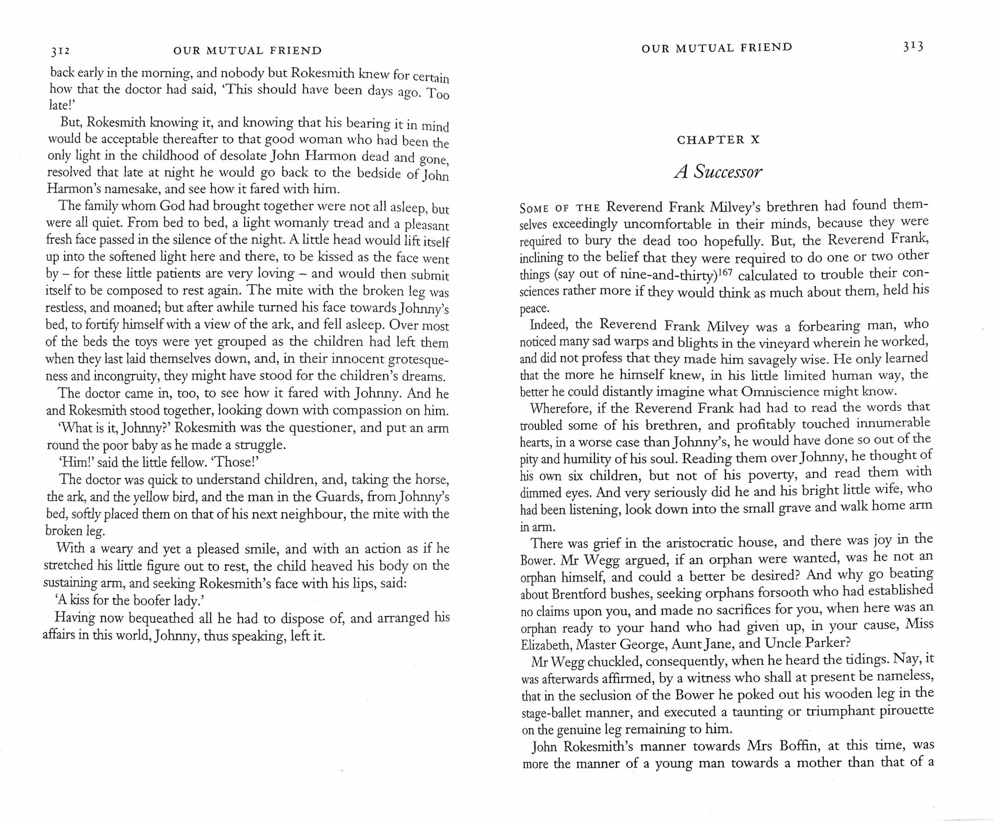 Our Mutual Friend, Dickens' last novel, gives one of his most comprehensive and penetrating accounts of Victorian society. Its vision of a culture stifled by materialistic values emerges not just through its central narratives, but through its apparently incidental characters and scenes. The chief of its several plots centres on John Harmon who returns to England as his father's heir. He is believed drowned under suspicious circumstances - a situation convenient to his wish for anonymity until he can evaluate Bella Wilfer whom he must marry to secure his inheritance. The story is filled with colourful characters and incidents - the faded aristocrats and parvenus gathered at the Veneering's dinner table, Betty Higden and her terror of the workhouse and the greedy plottings of Silas Wegg.