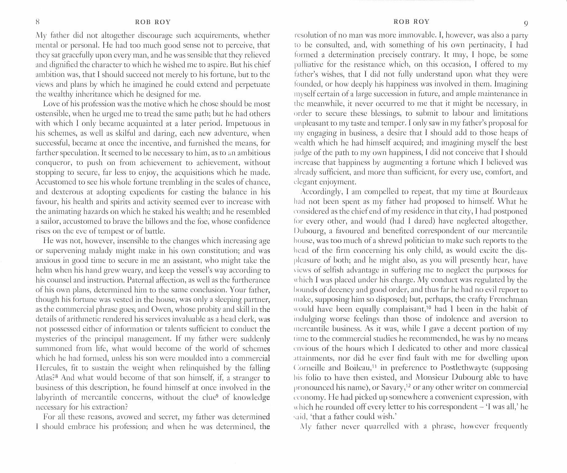 Сер Вальтер Скотт, хотя и является британским писателем, но никогда не забывал о свой родине – Шотландии. Многие его романы были написаны на шотландском гэльском и на шотландском английском языках. Одним из них был историко-авантюрный роман «Роб Рой». В этом роман большая часть событий происходить во время путешествия по всей территории Британских островов. Дорога ведет главного героя - Френка Осбальдистона на север Британии - от центра цивилизации страны к «дикарству». Даже не замечая того, Френк, преодолевая пределы страны, проезжает буржуазный Лондон, который сменяется феодальным замком в Нортумберленде. Его путешествие продолжается в Глазго, а оттуда он идет в Горную Шотландию и, в конце концов, повторяет свой путь в обратном порядке. По сути Френк Осбальдистон проходит сквозь географическое, социальное и культурное пространство Британии и самого романа, и перед читателем - разворачиваются последовательно разные миры, в каждом из которых живут люди по своим нормам и законам. Такое разнообразие свойственно романам сера Вальтера Скотта. Надеюсь, что Вам понравится эта книга.