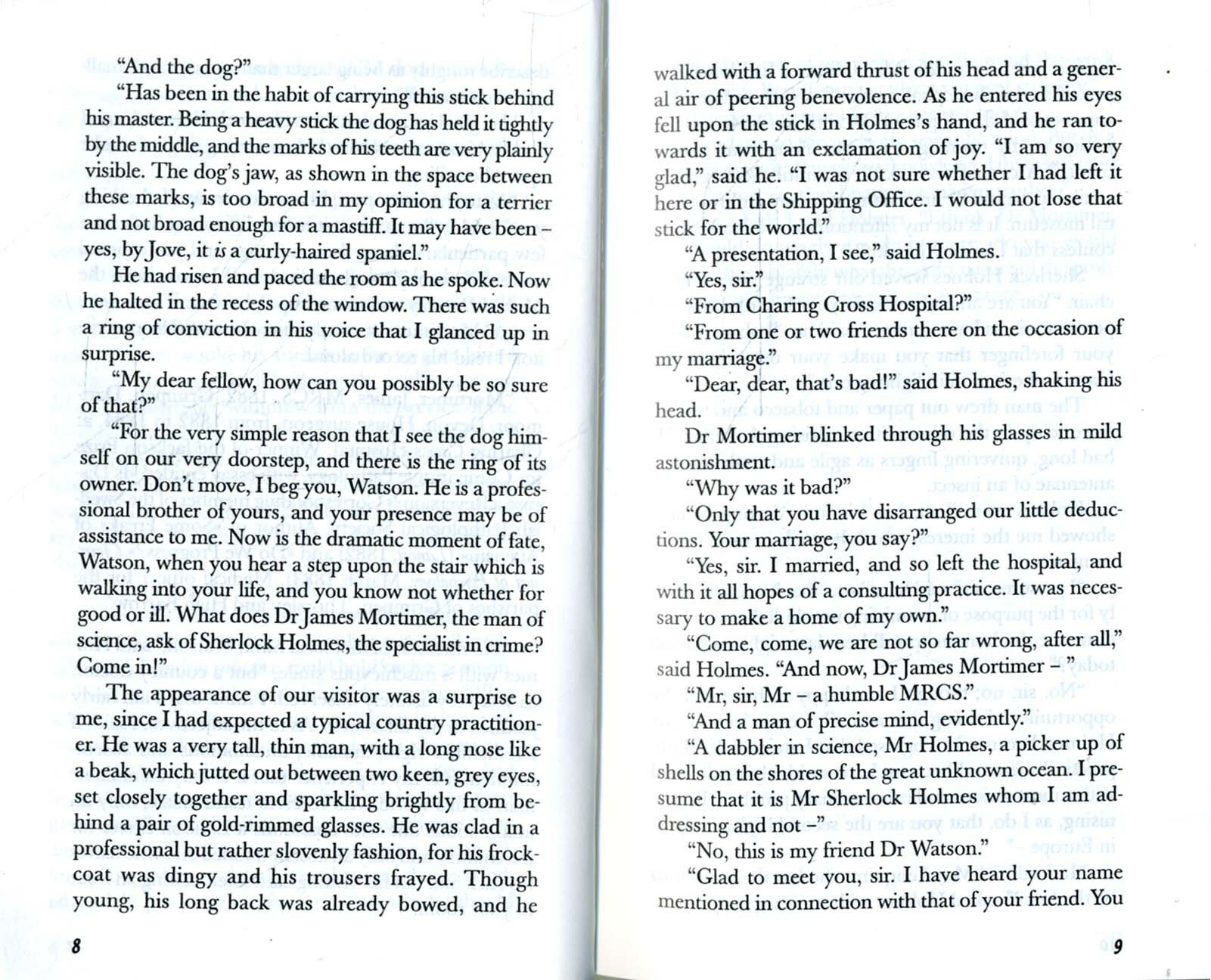 События данного произведения Конан Дойля я думаю и без рецензий известны всем и каждому. В данной книге дан неадаптированный вариант текста, который на мой субъективный взгляд не совсем подходит для начального изучения языка. Обилие редковстречающихся в обычной разговорной жизни слов и выражений может отпугнуть новичка от прочтения историй о приключениях Шерлока Холмса в оригинале. Что касается самой книги, то она, к сожалению, не очень прочная, в мягком переплете, но удобная для чтения в дороге.