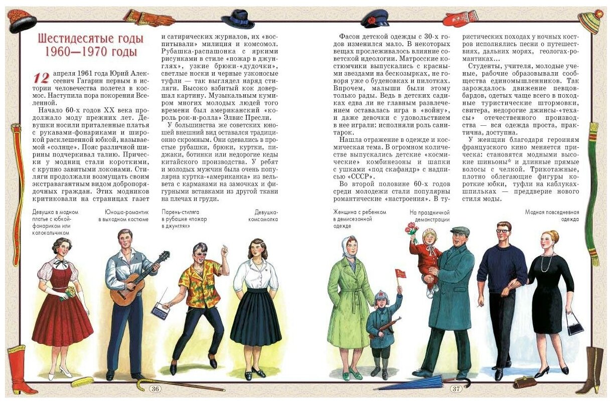 Каждый разворот книги представляет свой временной отрезок, богато украшен иллюстрациями. -