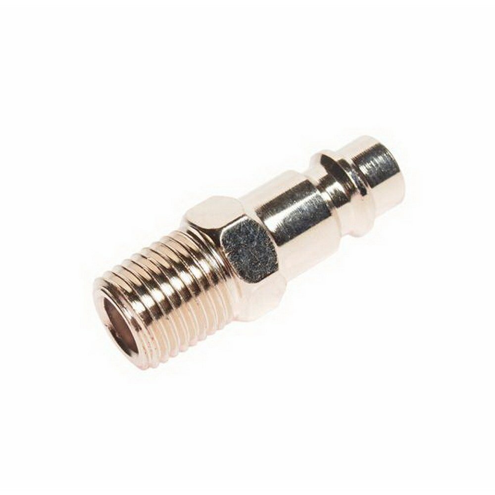 Быстросъемное соединение для воздуха "папа"-"наружная резьба" 1/4" используется для соединения пневмоинструмента, шлангов и компрессорного оборудования. Быстроразъемное соединение для пневматики изготовлено из латуни.