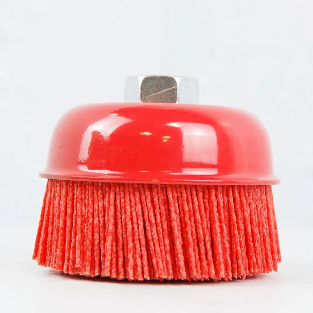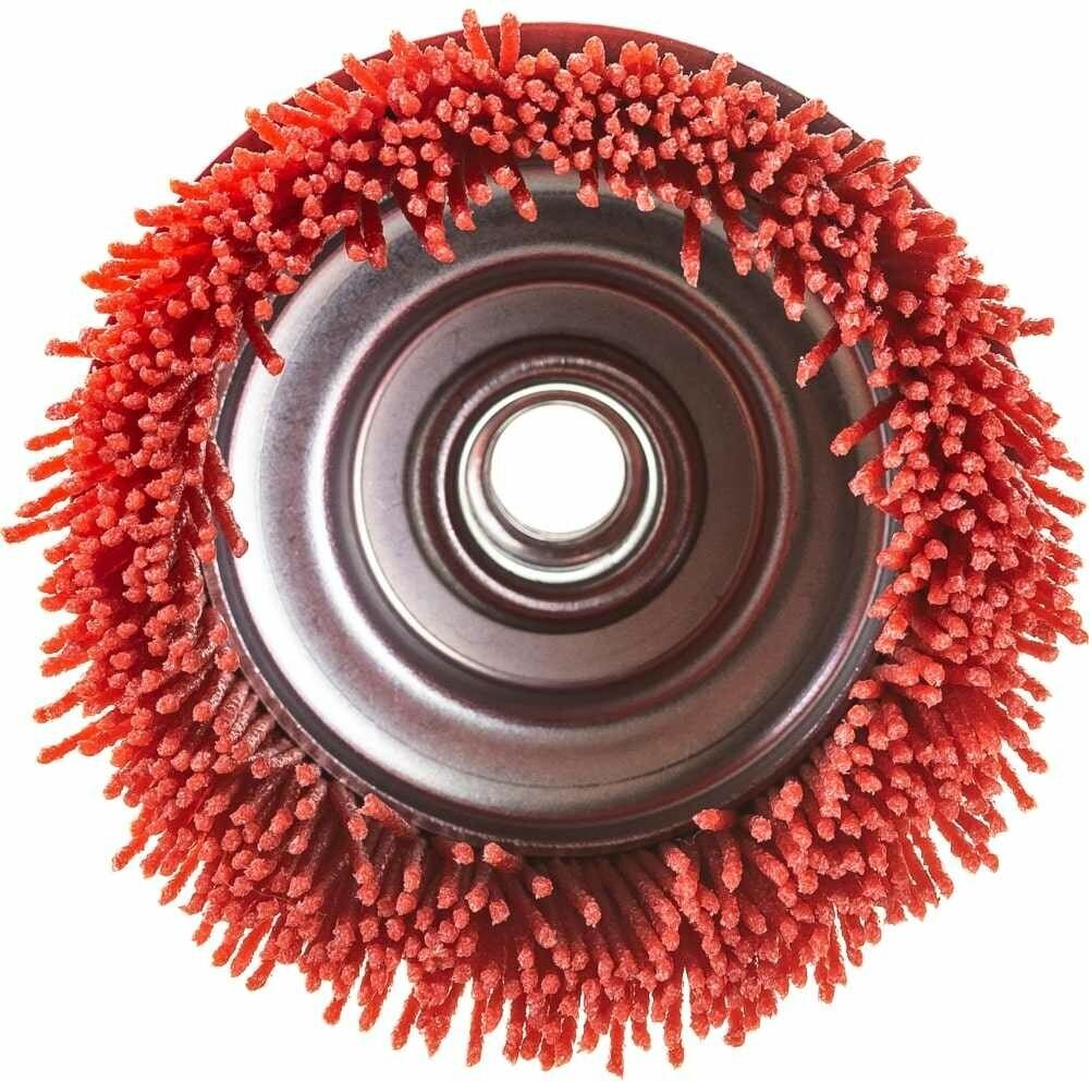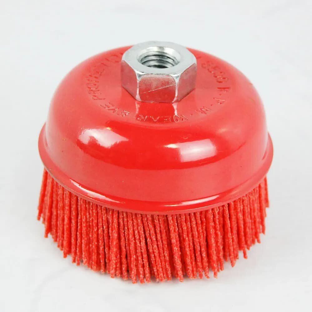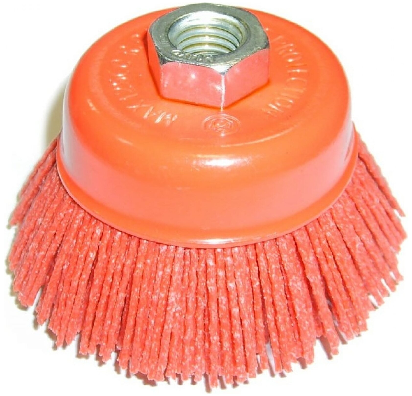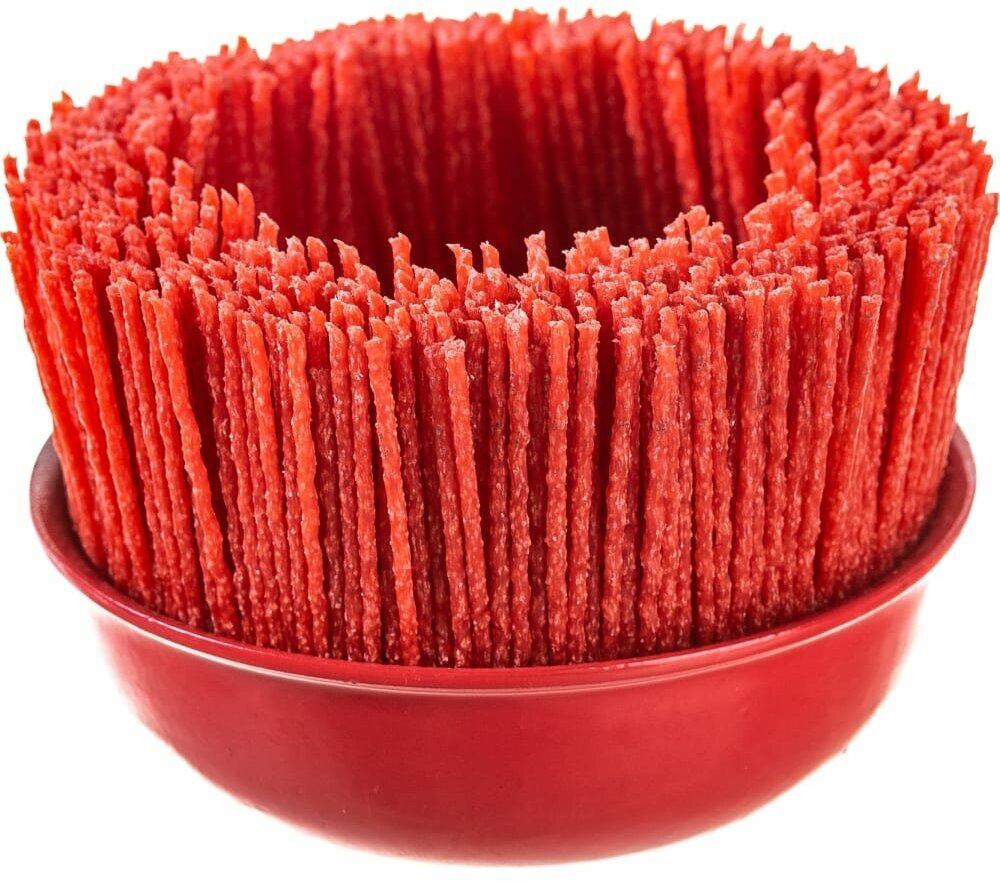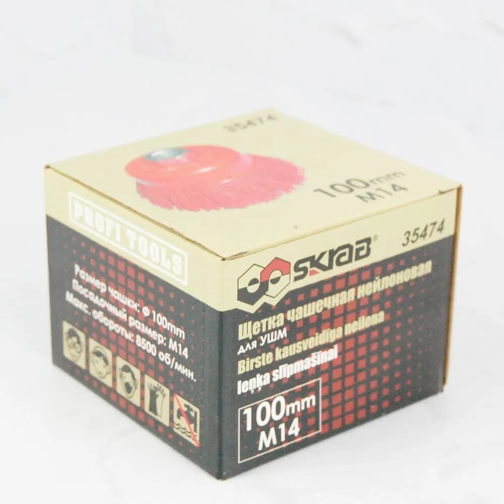 Корщетки-чашки с нейлоновым ворсом идеально подходят для деликатного шлифования металлов, цветных металлов, текстурирования (браширования) дерева. Щетка чашечная нейлоновая для ушм - самая популярная насадка для обработки бруса при помощи болгарки. Полимер-абразивные чашечные щетки также используются для снятия лакокрасочного покрытия при помощи болгарки (УШМ). Корщетка-чашка 100 мм SKRAB имеет присоединительную гайку М14 и просто накручивается на вал болгарки.