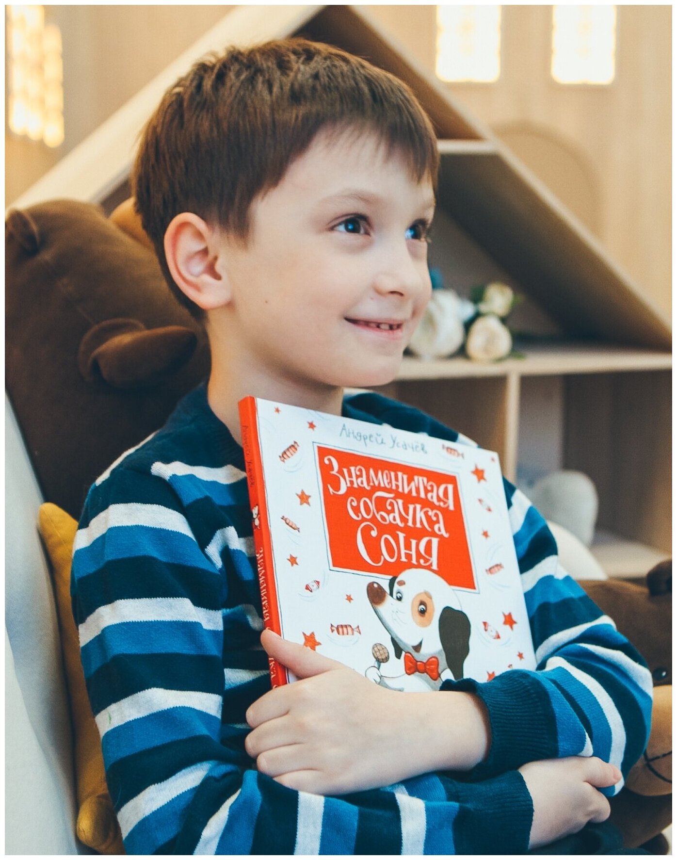 С удовольствием прочитав книгу А.Усачева "Умная собачка Соня" очень захотелось продолжения книги и новых интересных и увлекательных историй и вот они "Знаменитая собачка Соня"! Это еще 20 новых историй, которые сопровождаются такими же красочными крупными иллюстрациями. Шрифт крупный, что очень удобно и дети постарше могут сами читать книгу. "Знаменитая собачка Соня" очень нравится, читаем каждый вечер перед сном. Соня немного повзрослела и поэтому ее стали интересовать более серьезные, "взрослые" вопросы, но она по прежнему осталась такой же милой, наивной и любознательной собачкой. Советуем всем, кому уже полюбилась "умная Соня"!