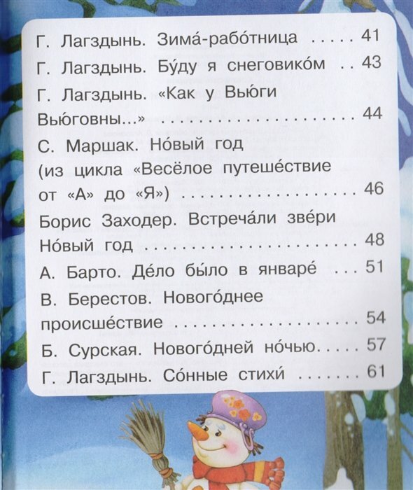 Книга стихотворений А. Барто, С,Маршака, К.Чуковского – это классика детской литературы. На этих произведениях выросло много поколений читателей. Бабушки с дедушками, мамы с папами давным-давно полюбили такие стихи, как "В лесу родилась ёлочка", Р.Кудашевой, "Под Новый год" С.Михалкова, "Зимнее ателье" Г.Лагздынь и многие другие. А теперь пришла очередь и тех детей, которые уже начали читать самостоятельно. В этом сборнике удобного формата большие буквы, слова с ударениями и великолепные иллюстрации Е.Алмазовой и В.Шварова, которые прекрасно дополняют эти классические стихотворения.