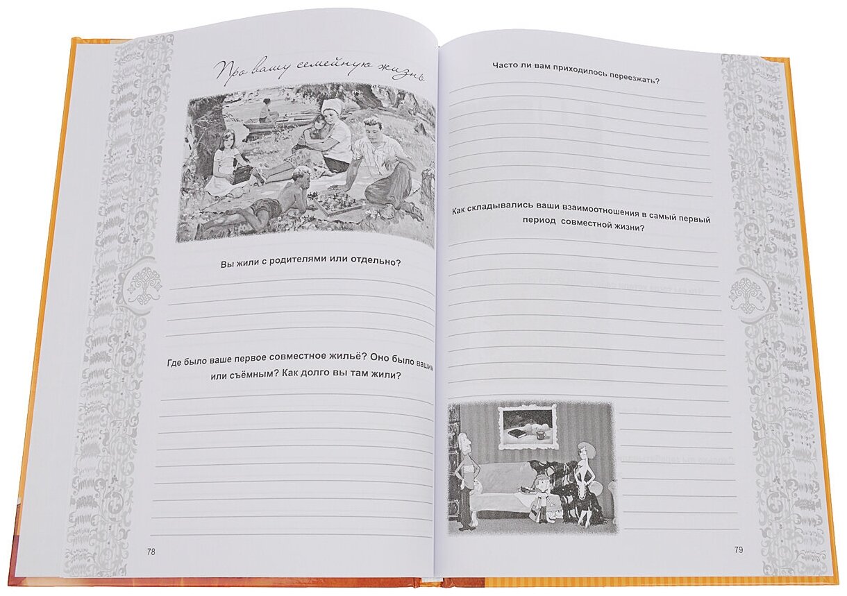 Больше подходит для поколения, рожденного до войны, т.к. есть вопросы про тот период. Но это не сильно портит впечатления от книги. Подарила своему отцу - он заполняет. Говорит, что не на все вопросы легко и сходу можно ответить, но в целом нравится заполнять.