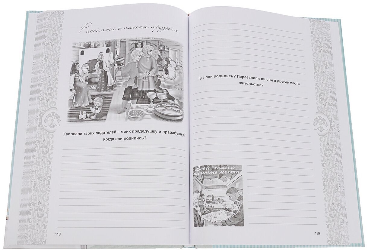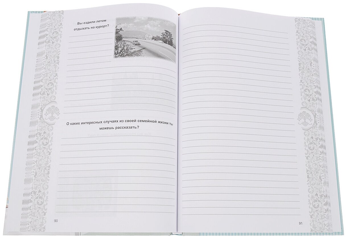 В этой книге достаточно места для записей, заполняется как анкета. Не только конкретные факты и события из жизни, но и отношение заполняющего к событиям в жизни страны, знания о своих предках, мечты и пожелания будущему поколению.