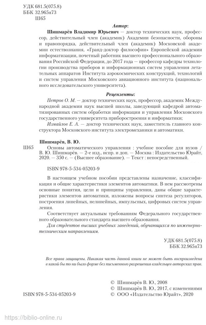 Сервис сравнения цен СкидкаГИД предлагает сравнить цены на товар «Книга: Основы автоматического управления. Учебное пособие для академического бакалавриата (Владимир Юрьевич Шишмарев); ЮРАЙТ, 2017»
